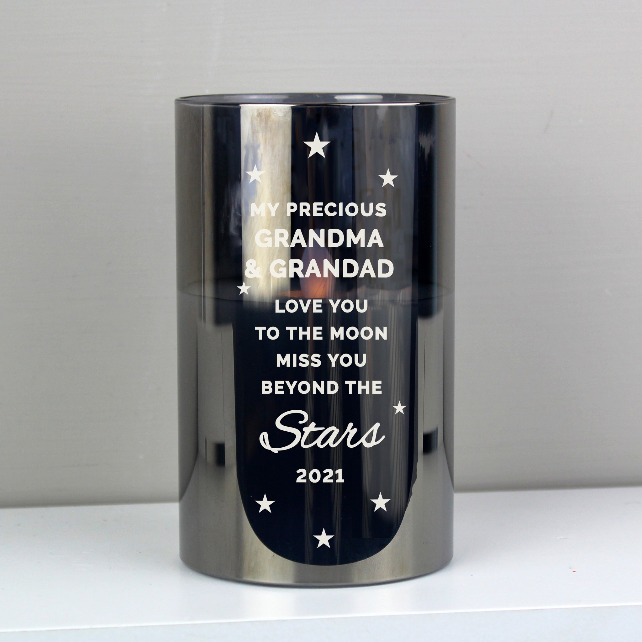 This Personalised Miss you beyond the stars Black LED Candle is a lovely way to remember a loved one.