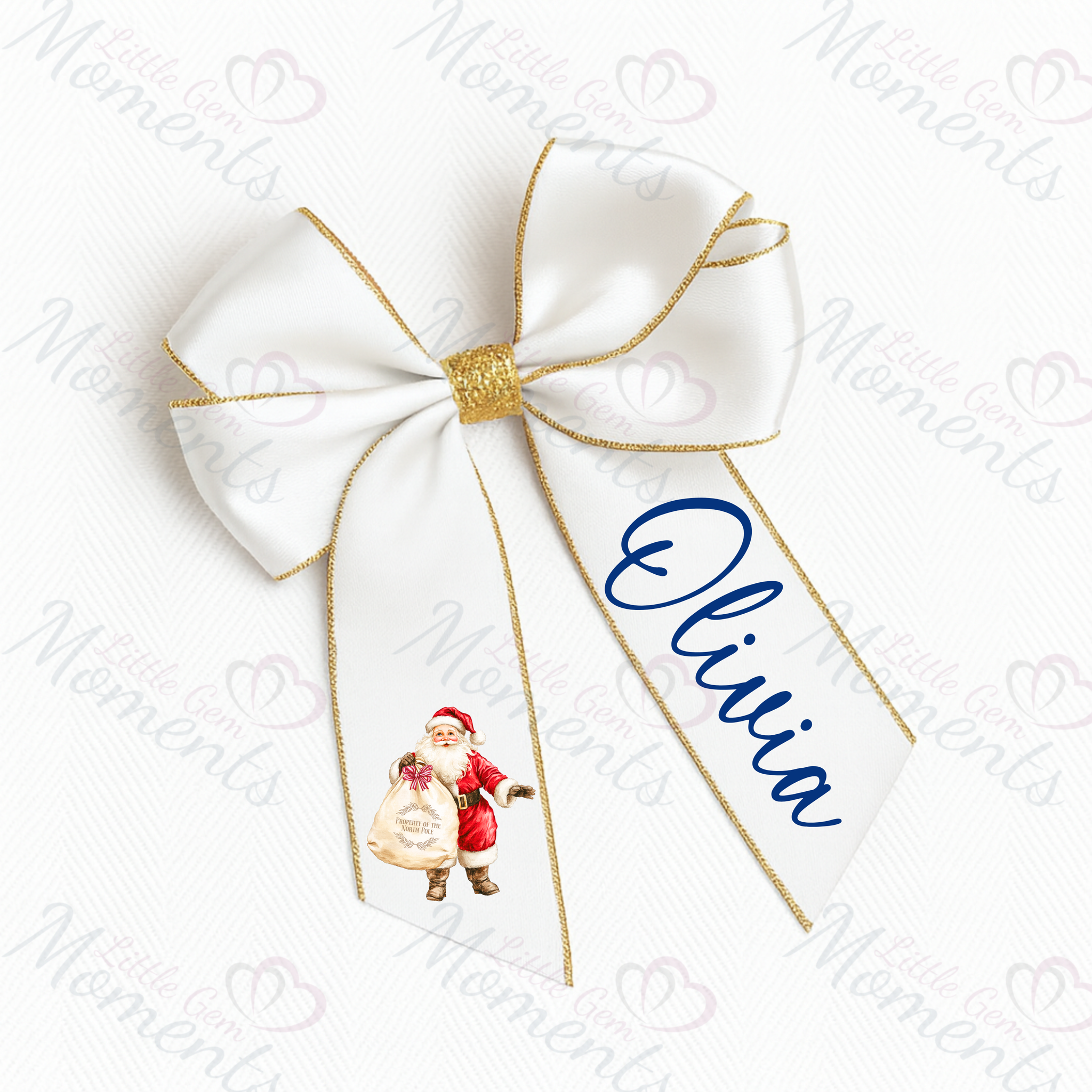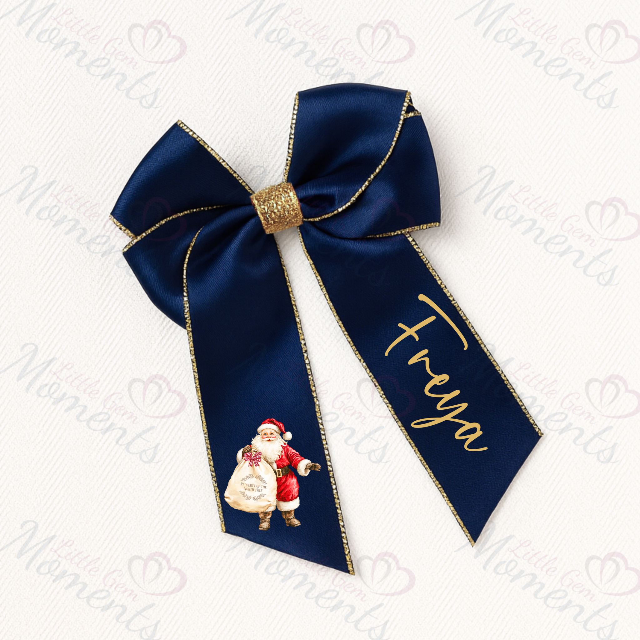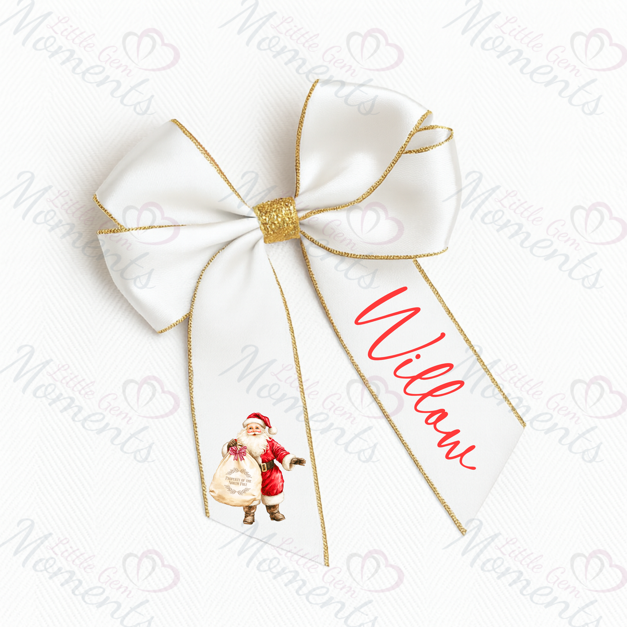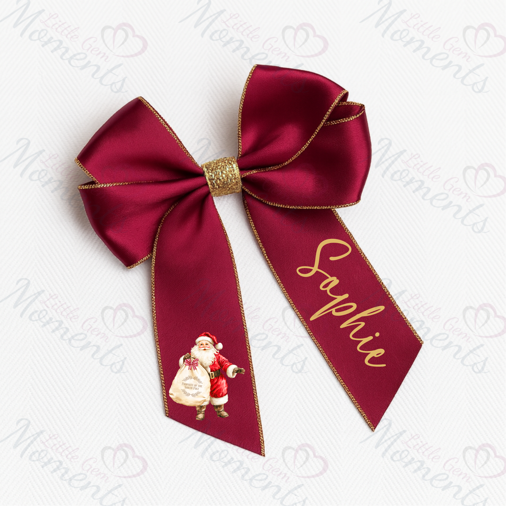 Personalised Glitter Trim Christmas Hair Bow - Santa Claus Design - Multiple Colours - 6 Inch Bow