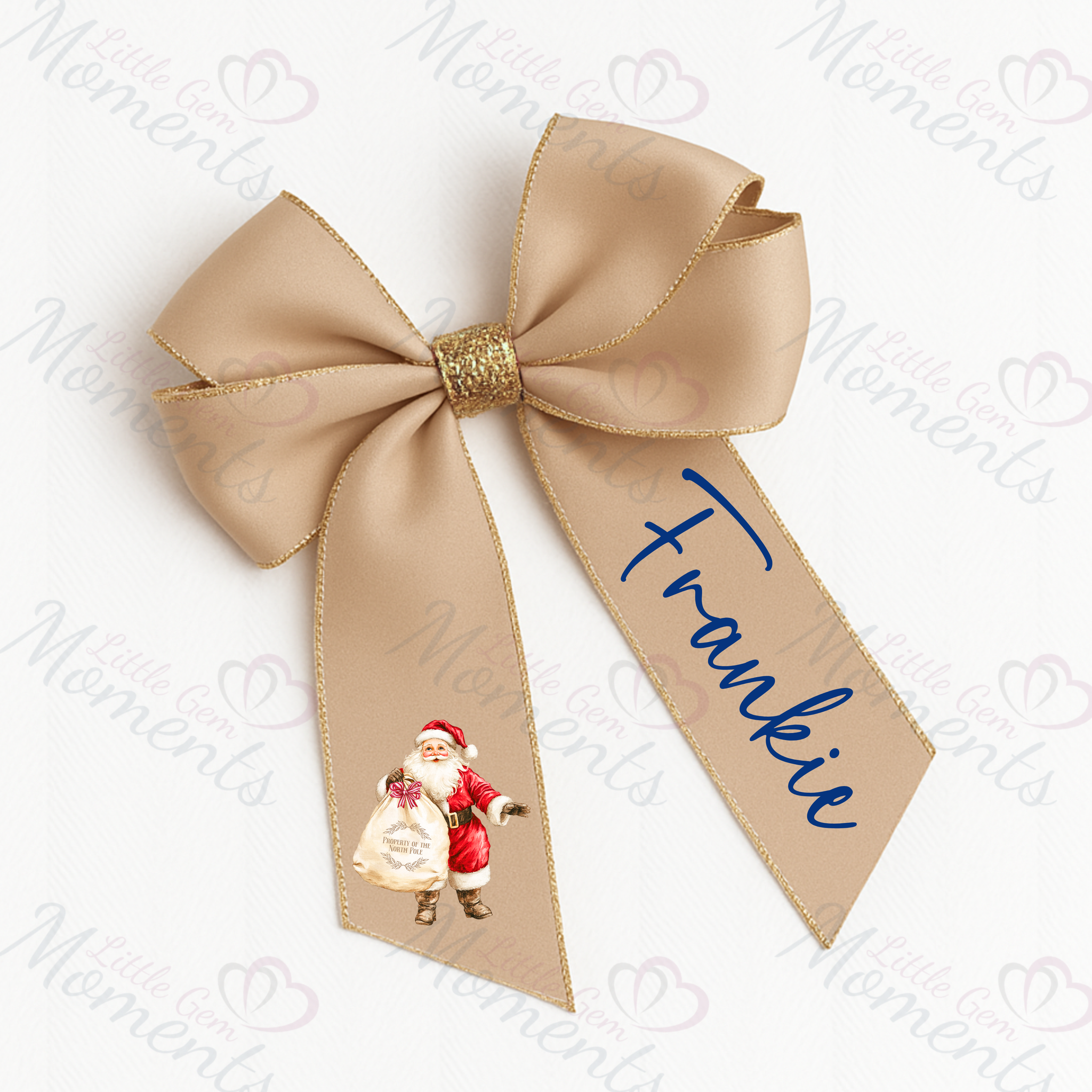 Name will appear in red, gold or navy, depending on the bow colour (please state when ordering if you have a preference)