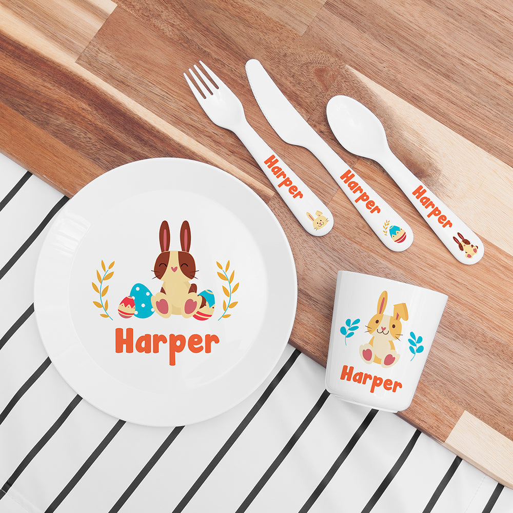 Personalised Kids Spring Bunny Plastic Dining Set