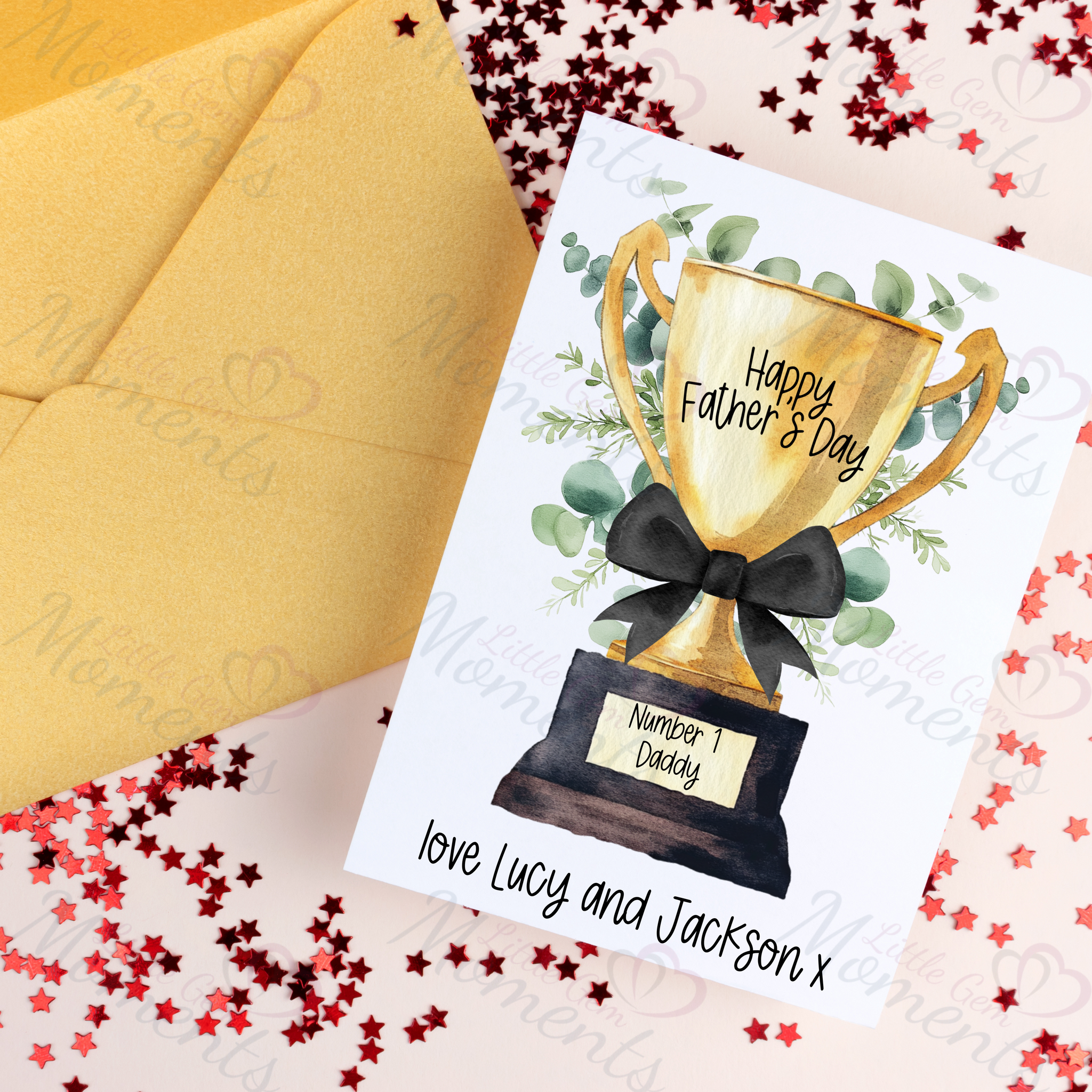 Personalised Happy Father's Day Card. Fully Custom Card for Dad - Trophy Design