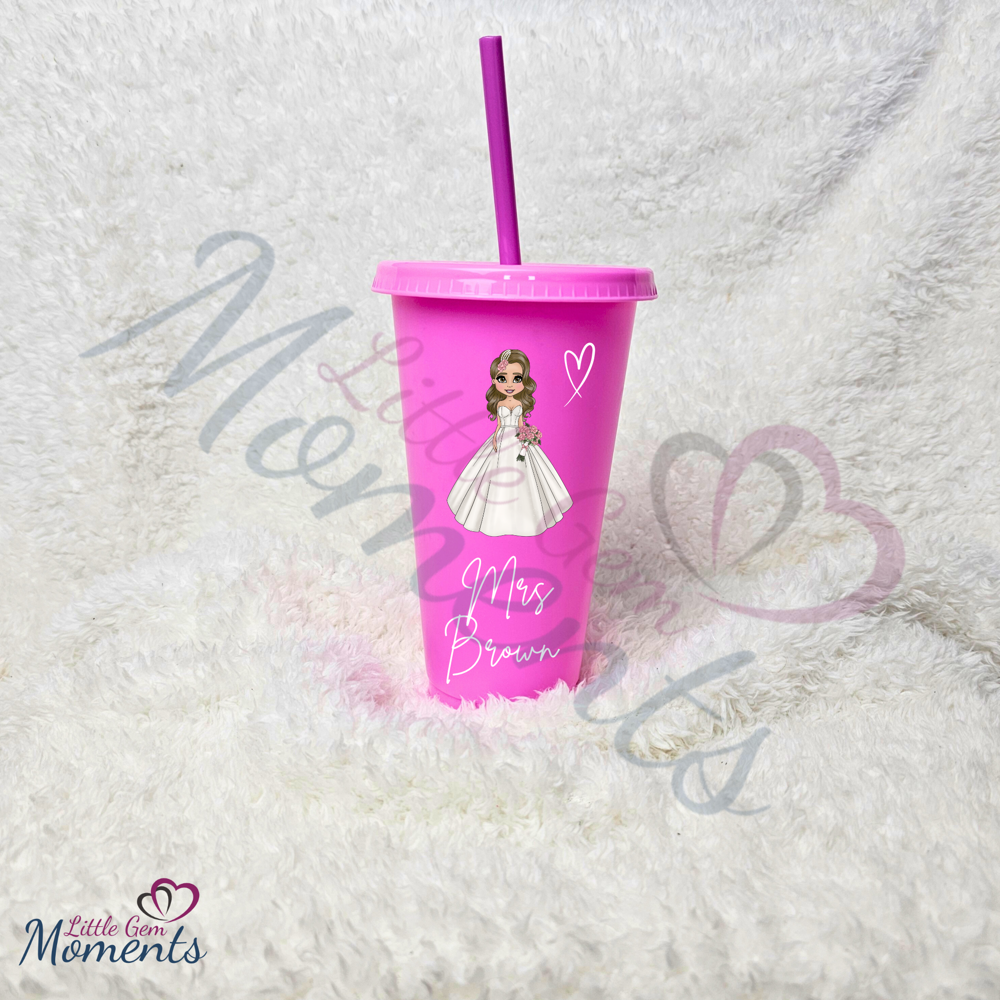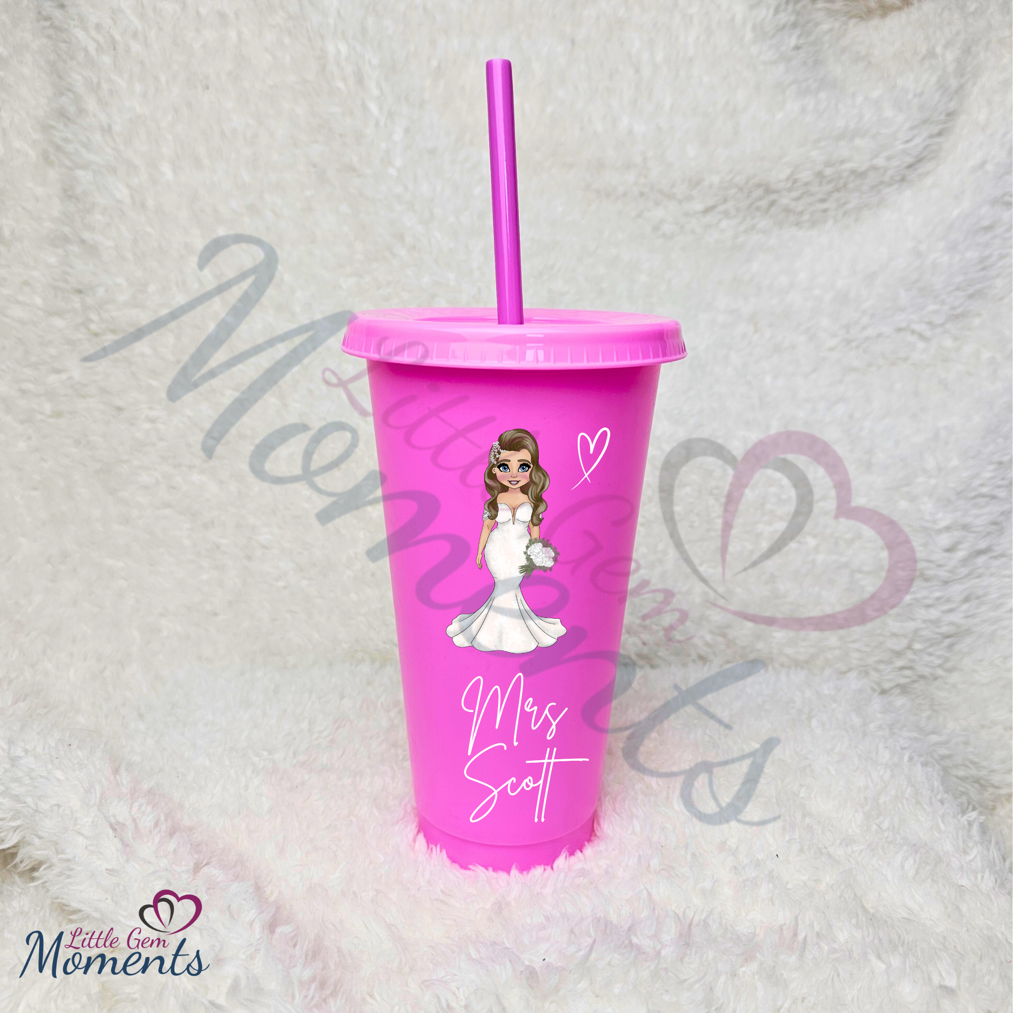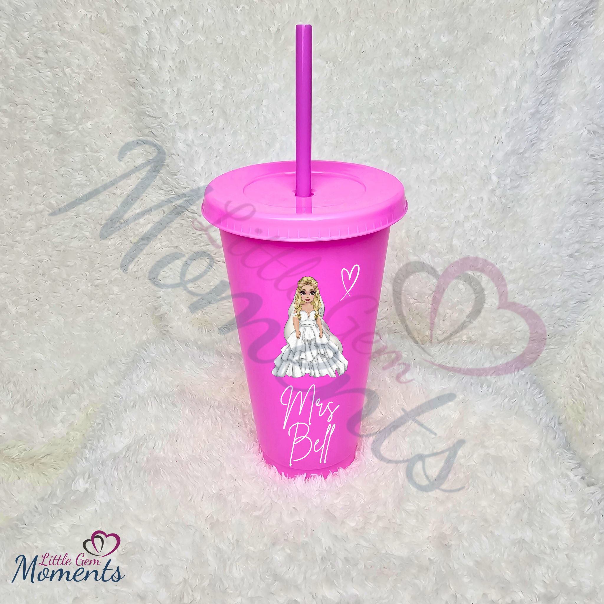 Personalised Bride Cold Cup with Lid and Straw. Custom Reusable 24oz Tumbler. Wedding Gift | Bridal Party | Hen Weekend