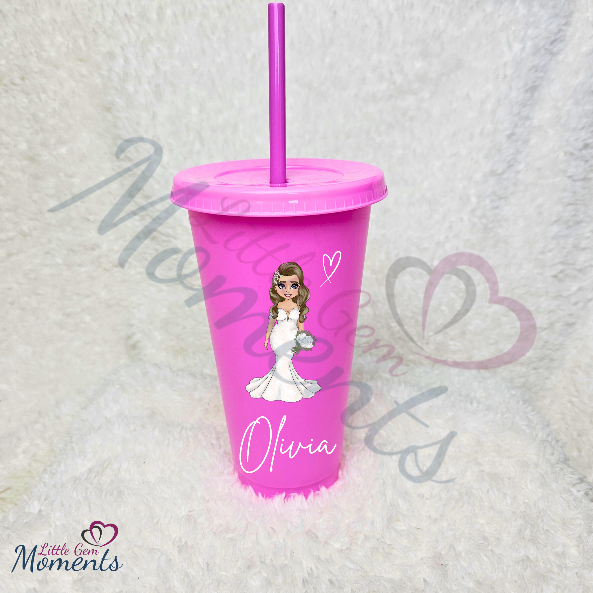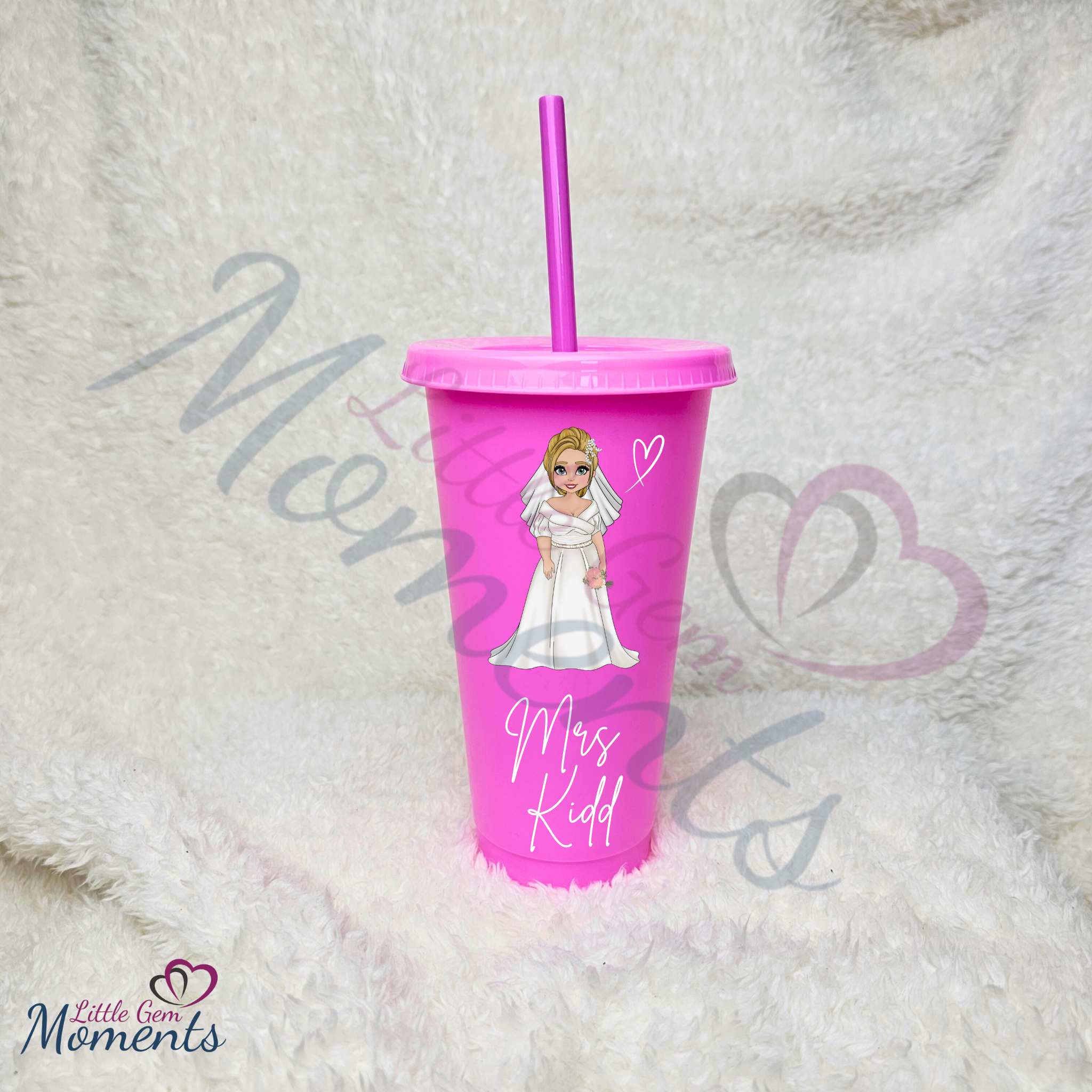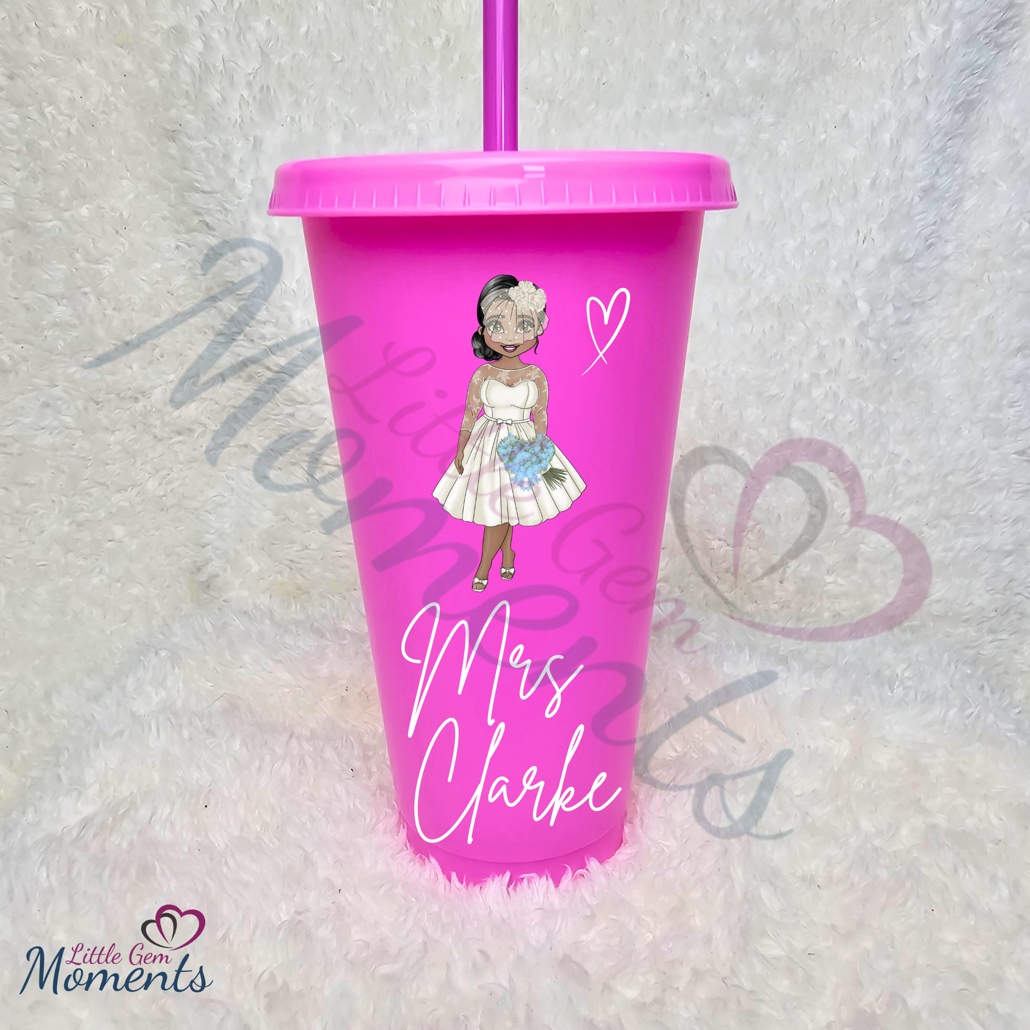Personalised Bride Cold Cup with Lid and Straw. Custom Reusable 24oz Tumbler. Wedding Gift | Bridal Party | Hen Weekend
