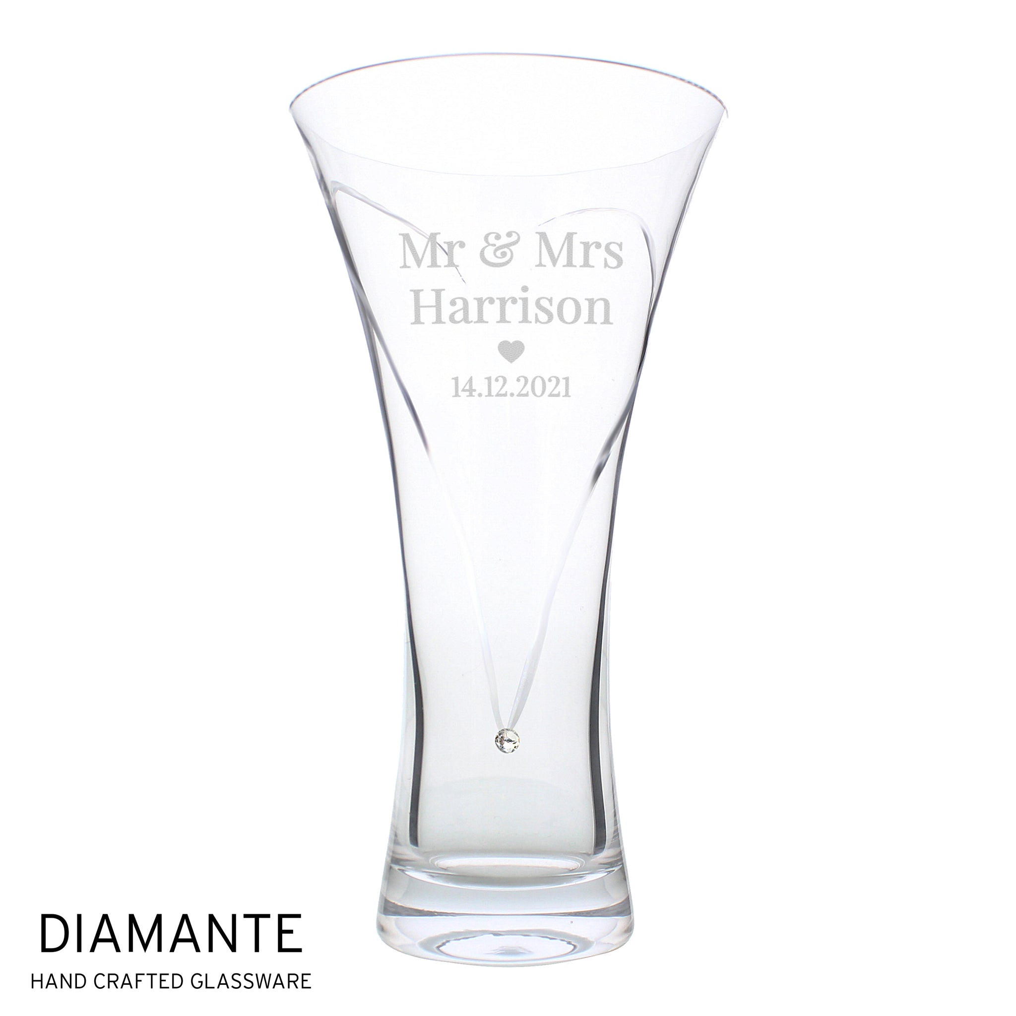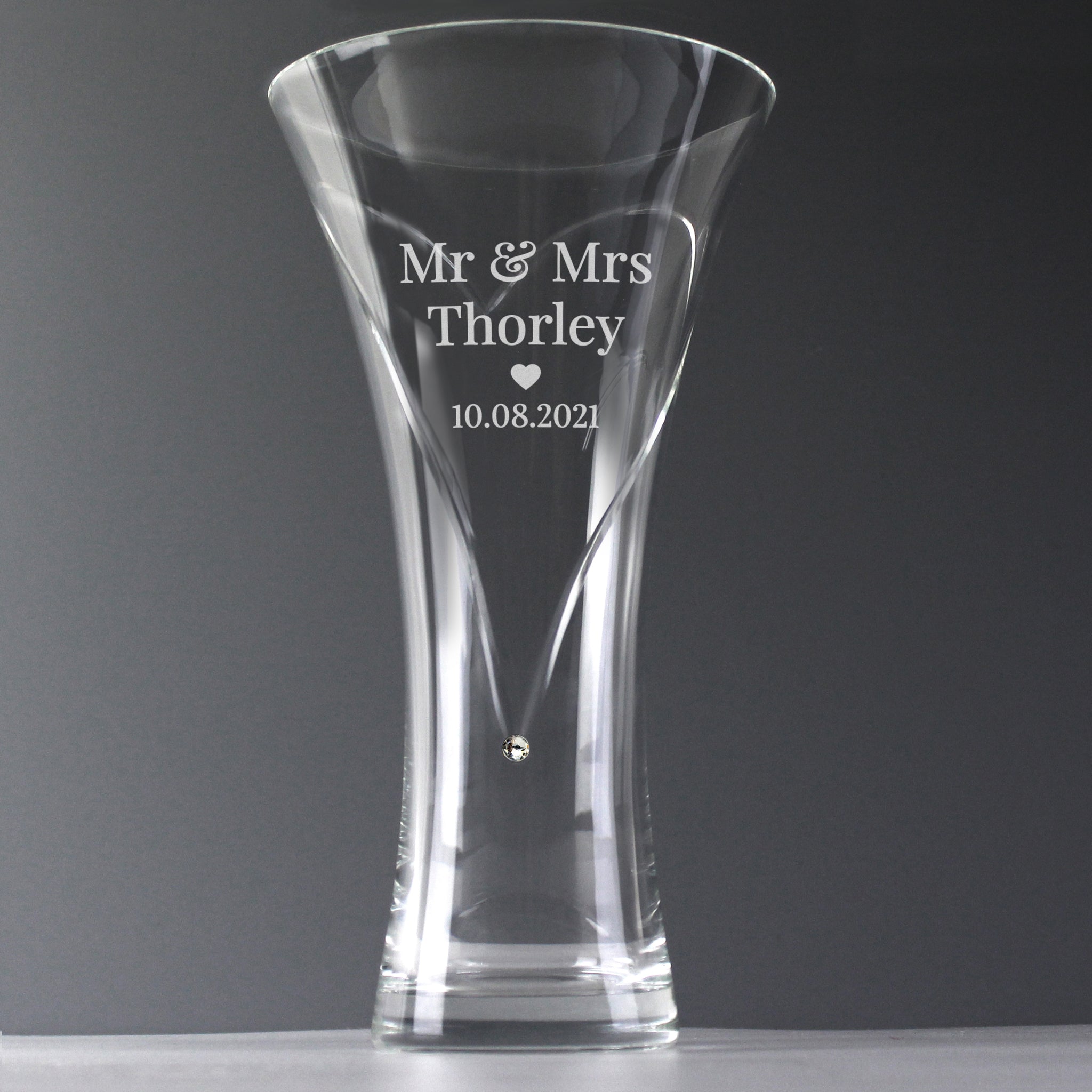 Personalised Mr & Mrs Large Hand Cut Diamante Heart Vase with Swarovski Elements
