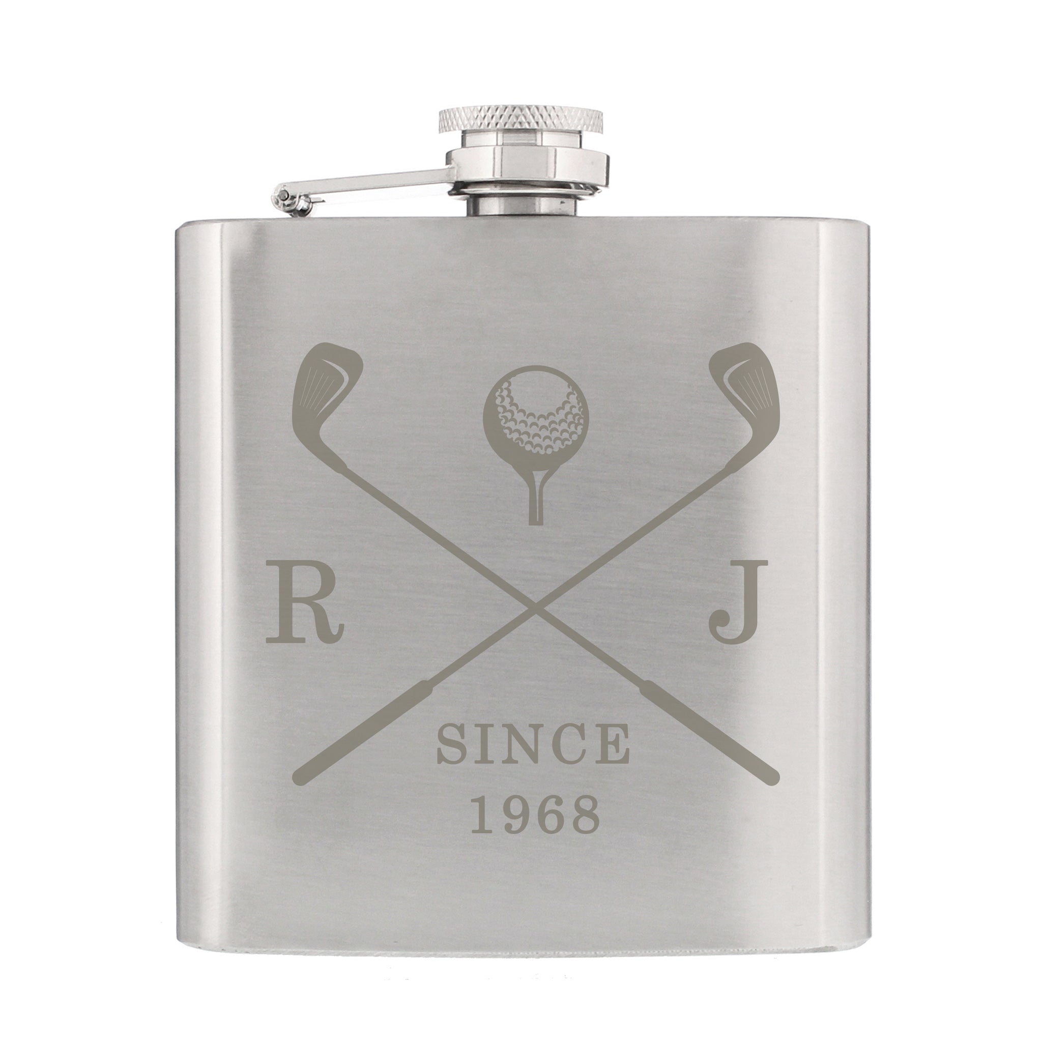 This 6oz stainless steel hip flask can be engraved with the following