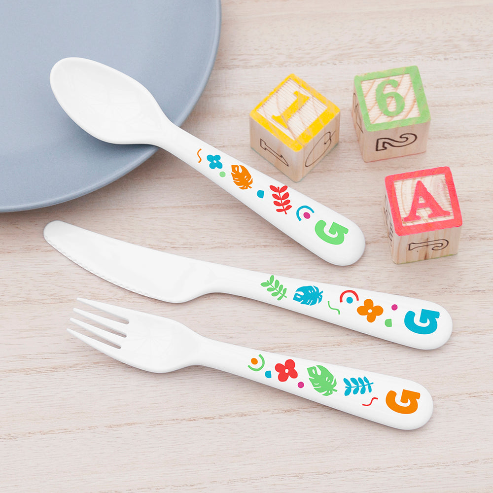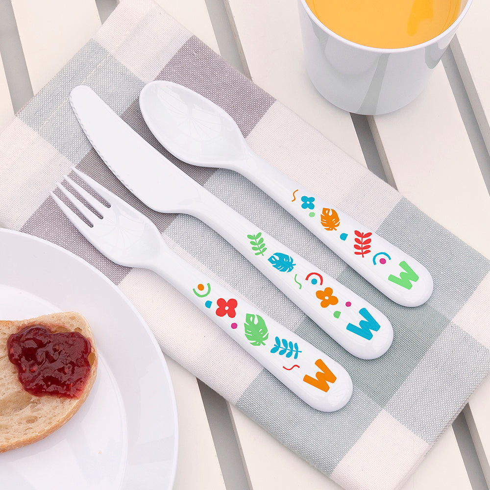 Personalised Kids Colourful Shapes Cutlery Set - Plastic