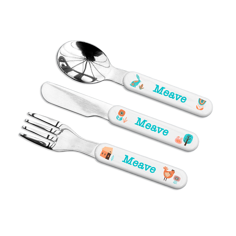 Personalised Kids Scandi Summer Cutlery Set - Metal