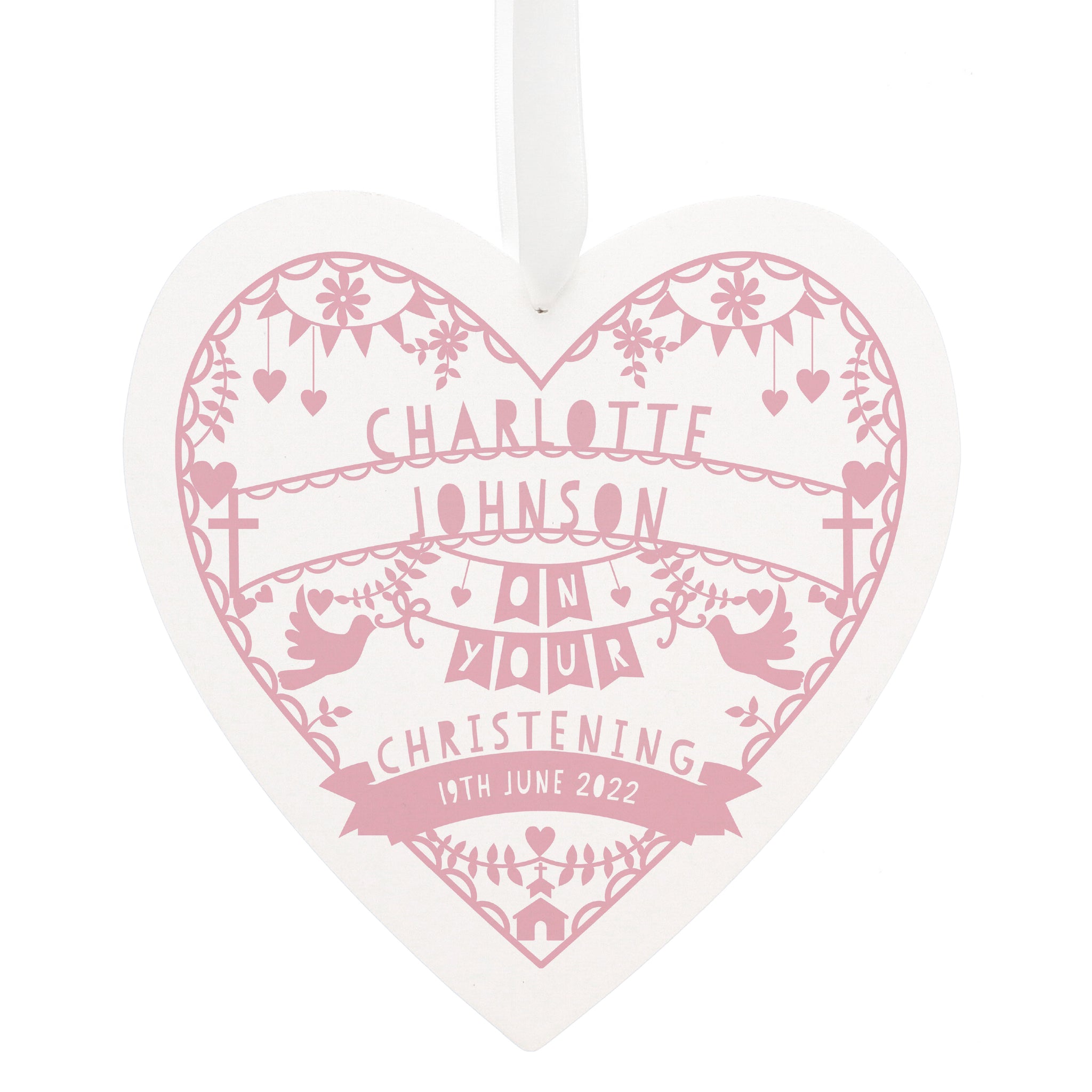 This Pink Paper Cut Large Wooden Heart is a gorgeous commemorative gift perfect for any religious occasion!