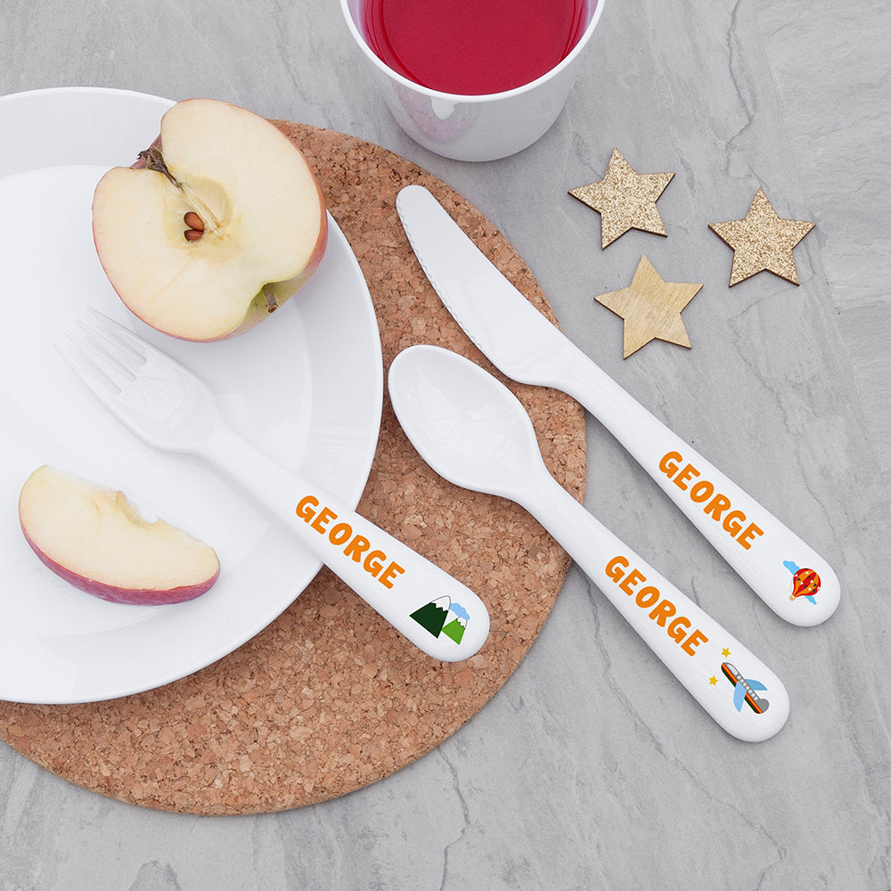 Personalised Kids Adventure Cutlery Set - Plastic