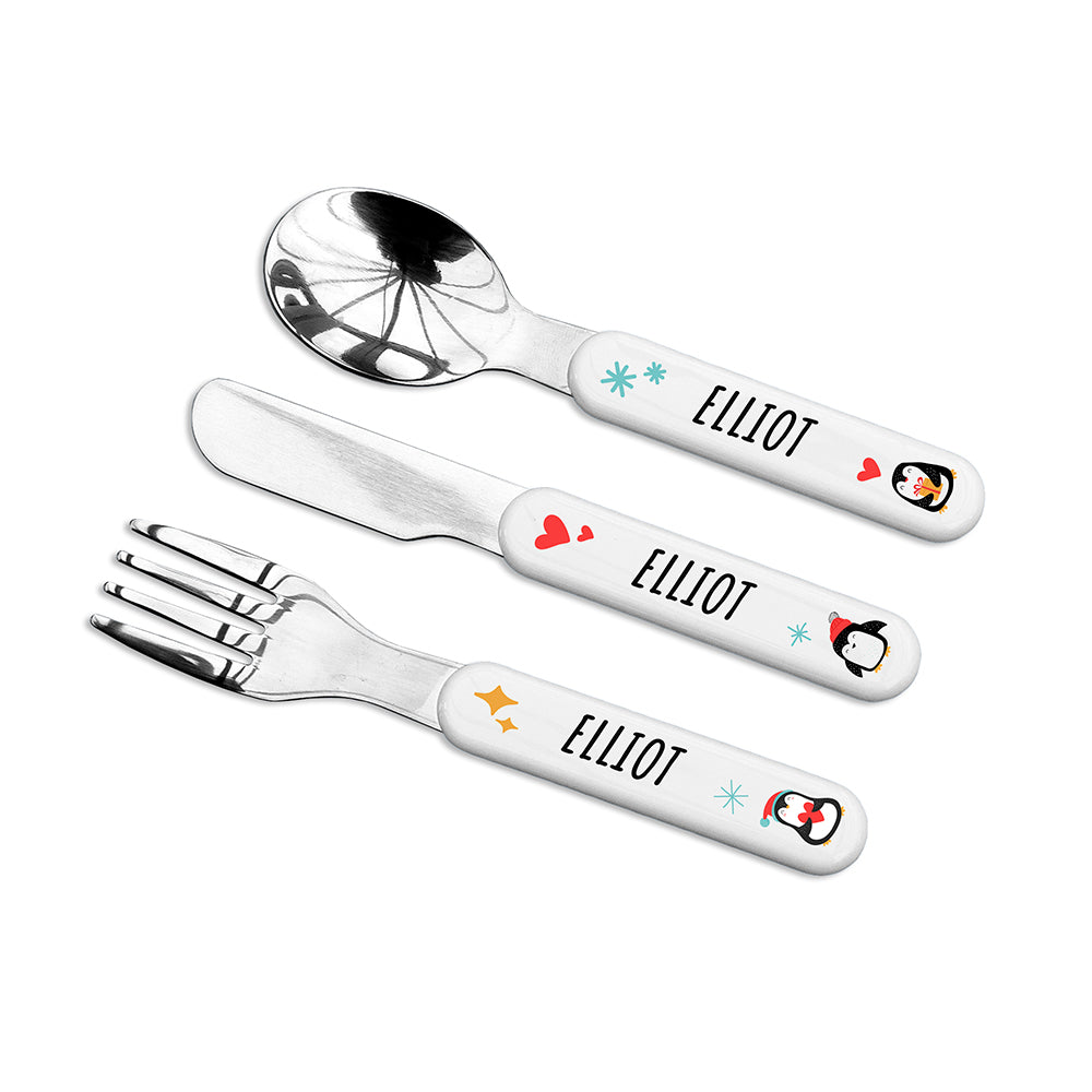 Personalised Kids Winter Penguin Cutlery Set - Metal