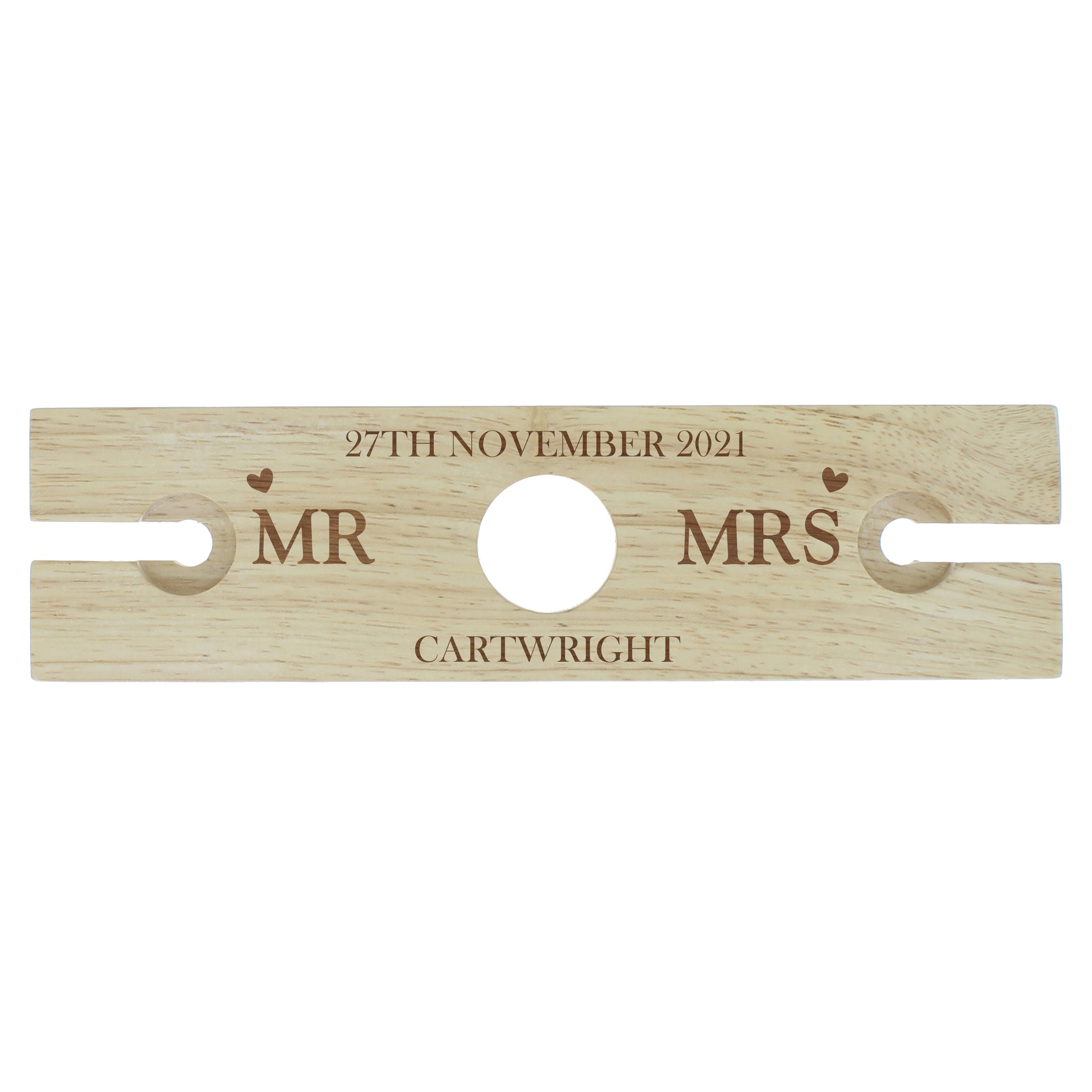 Celebrate your marriage with a drink beautifully presented by our Personalised Glass & Bottle butler. Perfect for placing on the top table for your first drink as a married couple.