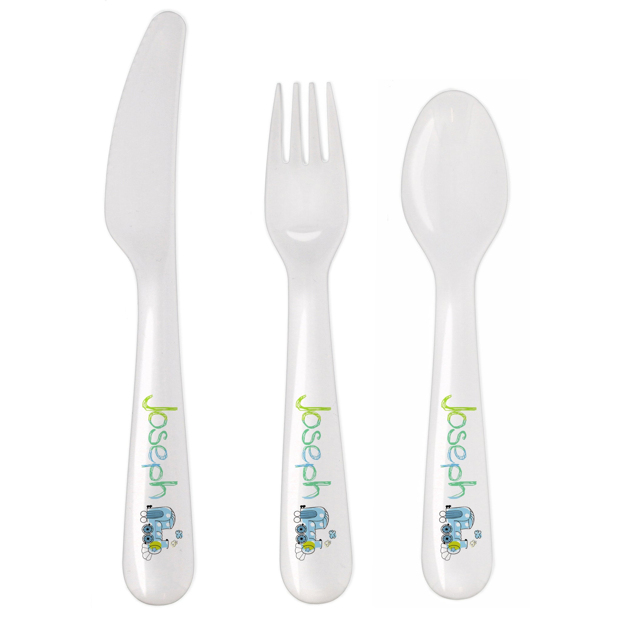 Personalised Patchwork Train 3 Piece Plastic Cutlery Set