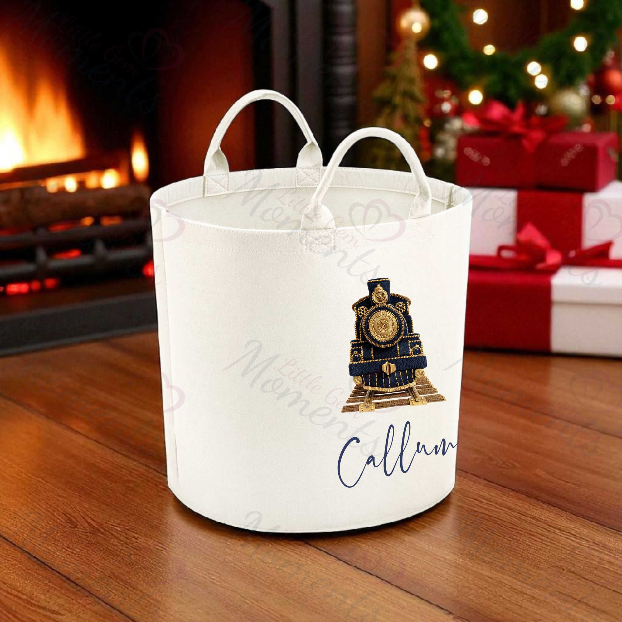Gift differently this Christmas with our gorgeous Christmas Felt Trug with Christmas Navy Train design. Perfect for storing all their Christmas presents!