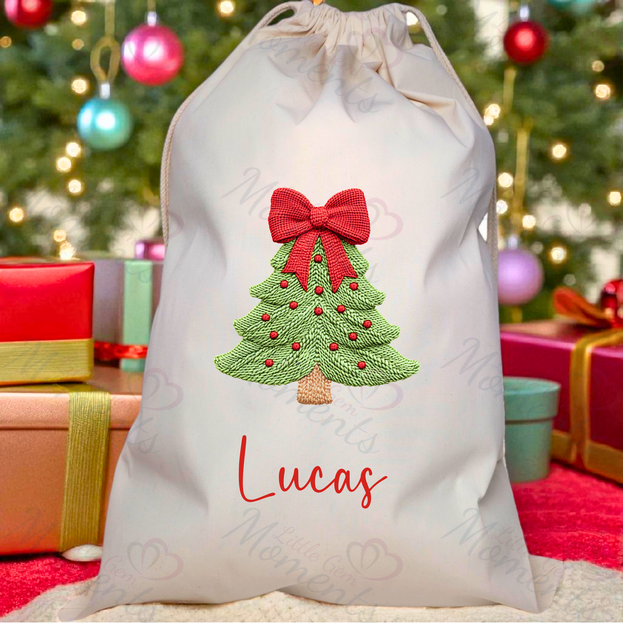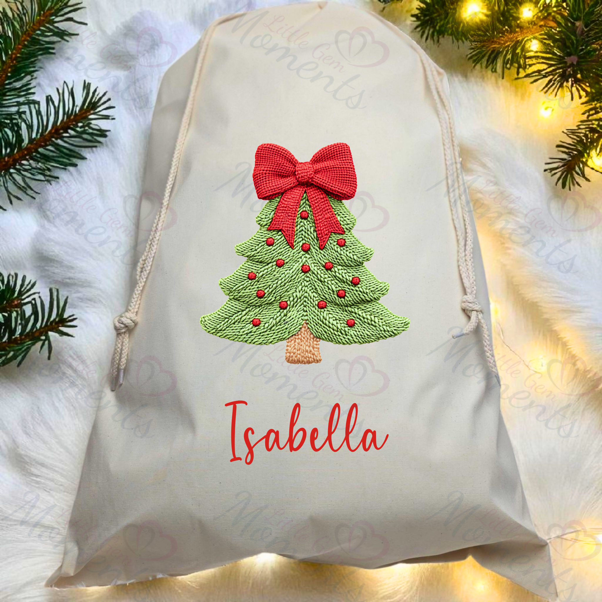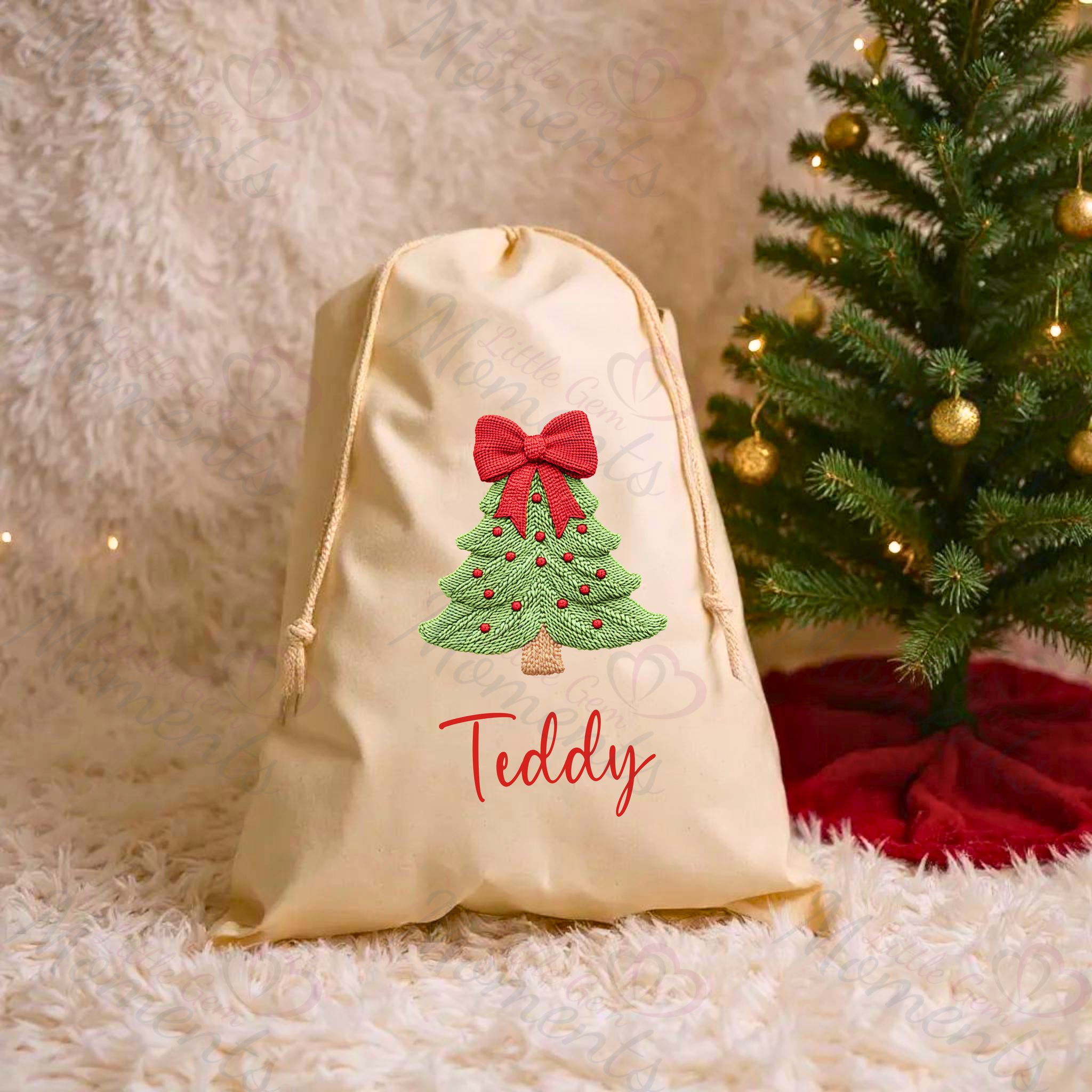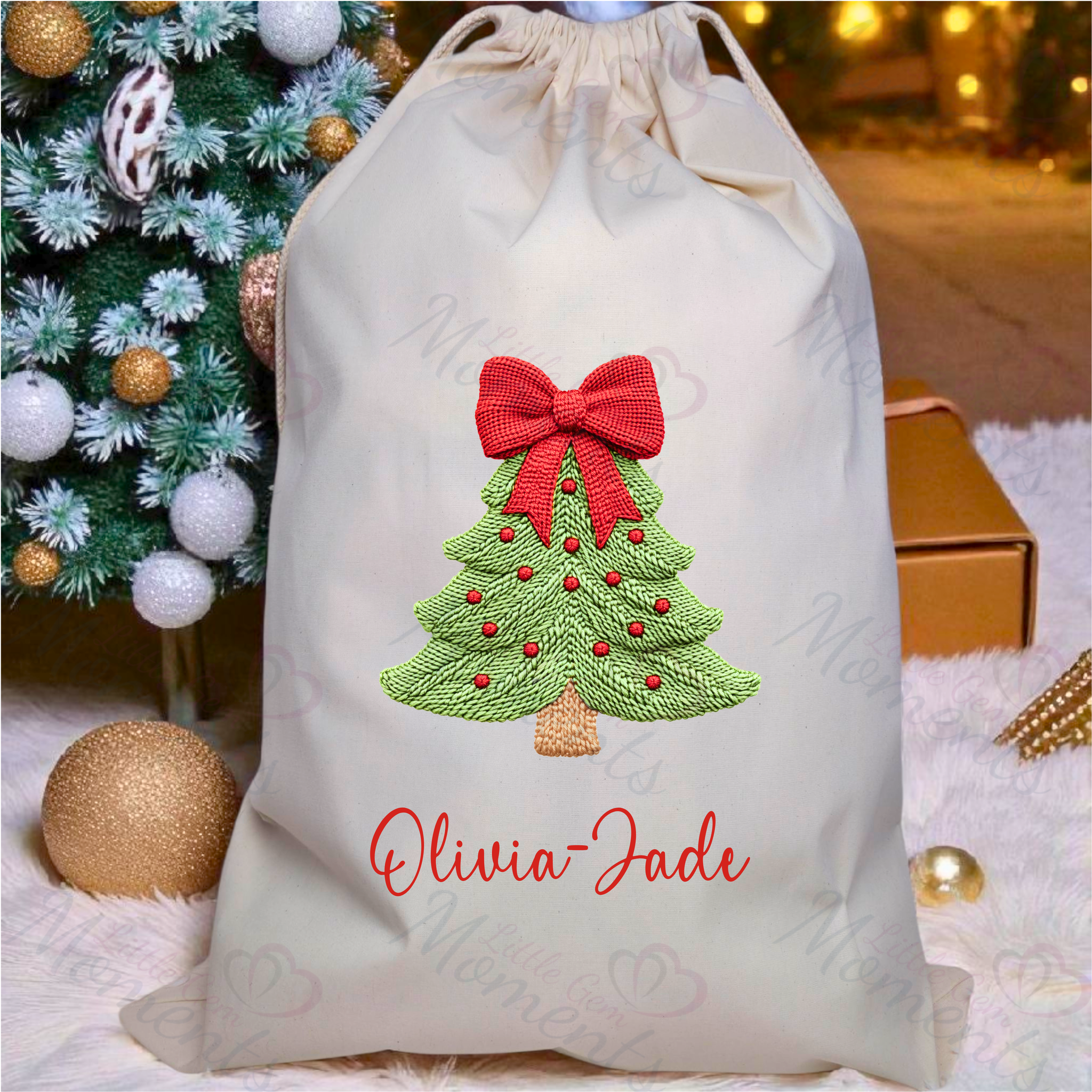 Personalised Christmas Santa Sack - Christmas Tree Design. Premium Custom Xmas Gift Sack with Name