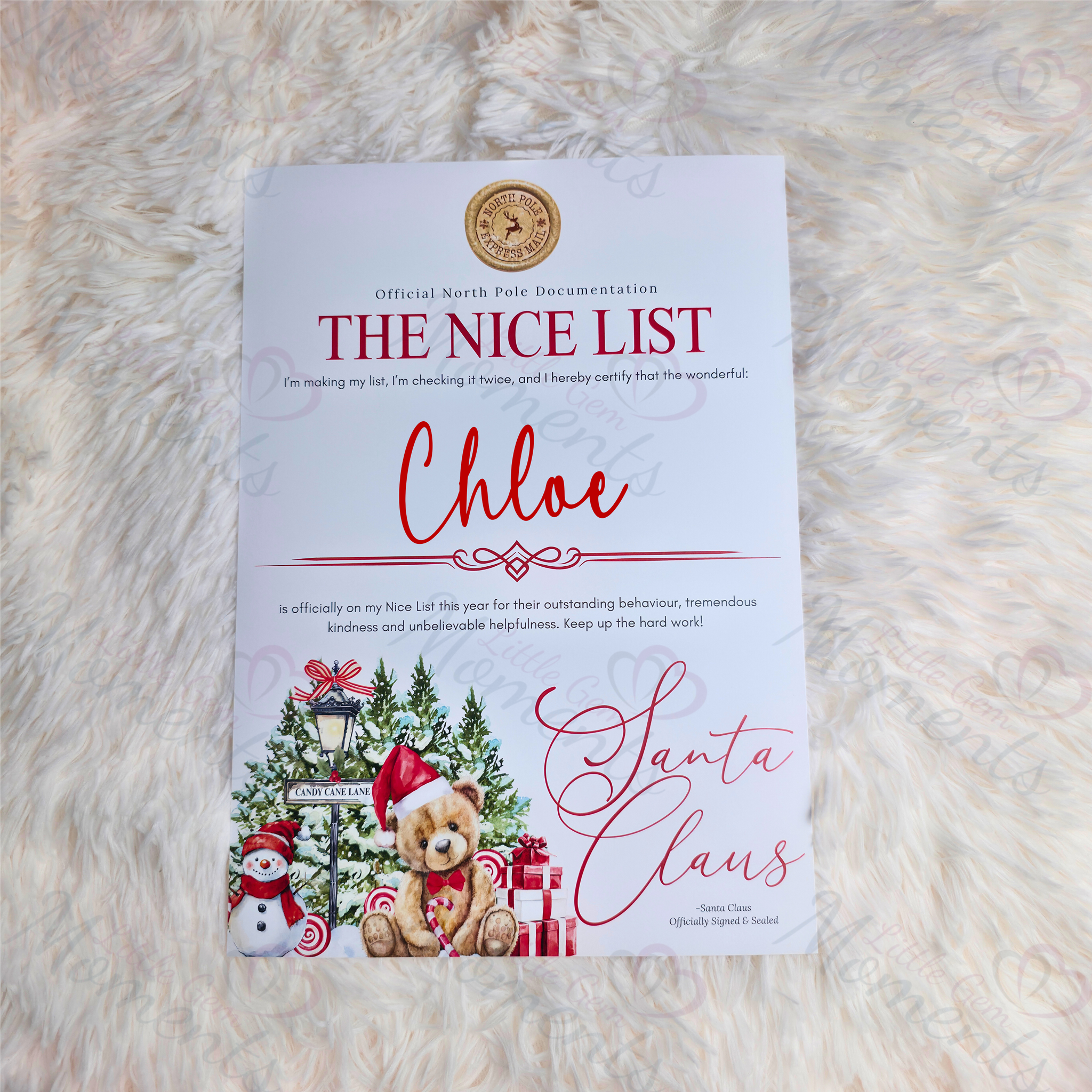 Let your little one know they made Santa's Nice this year with our Premium Personalised Nice List Certificate in Red!