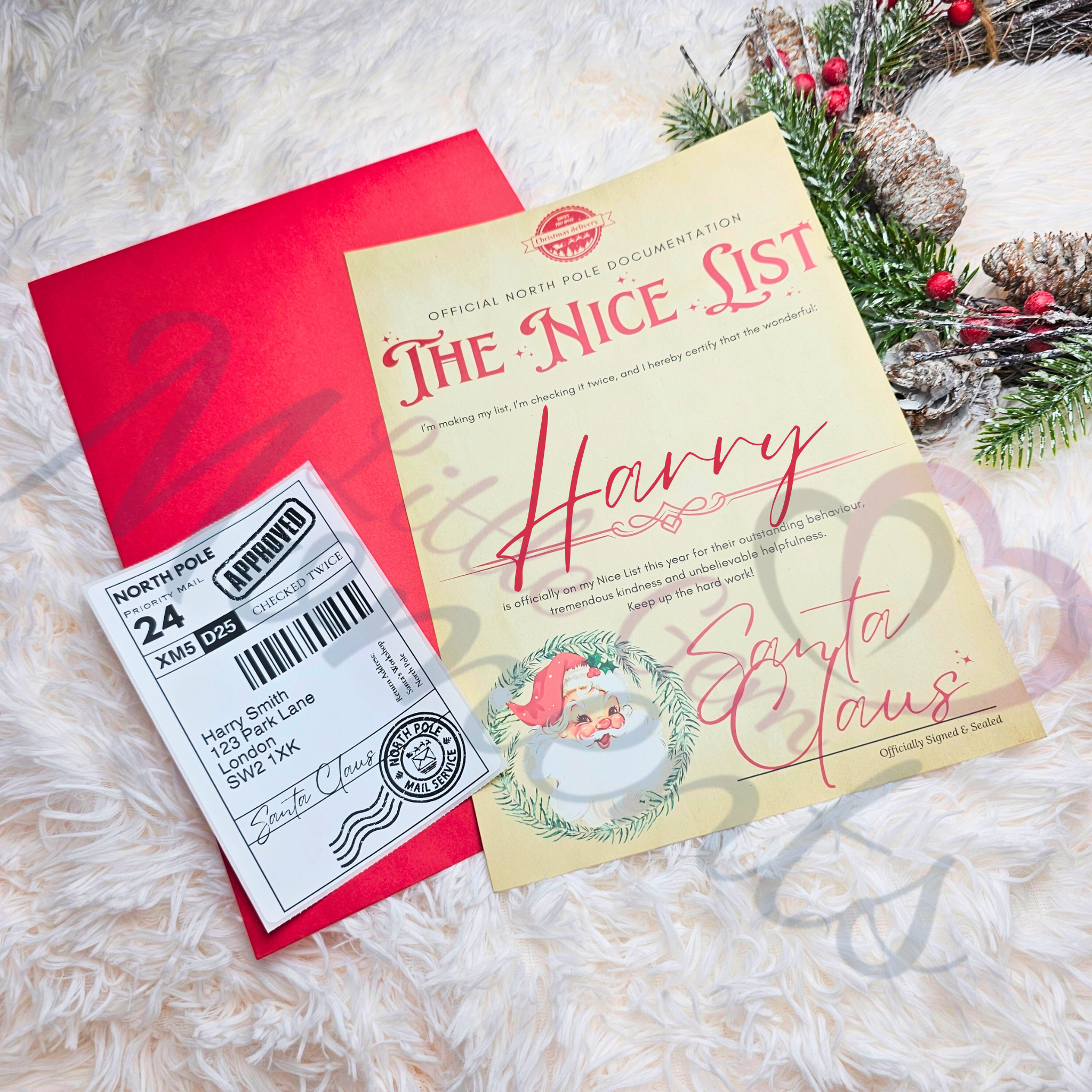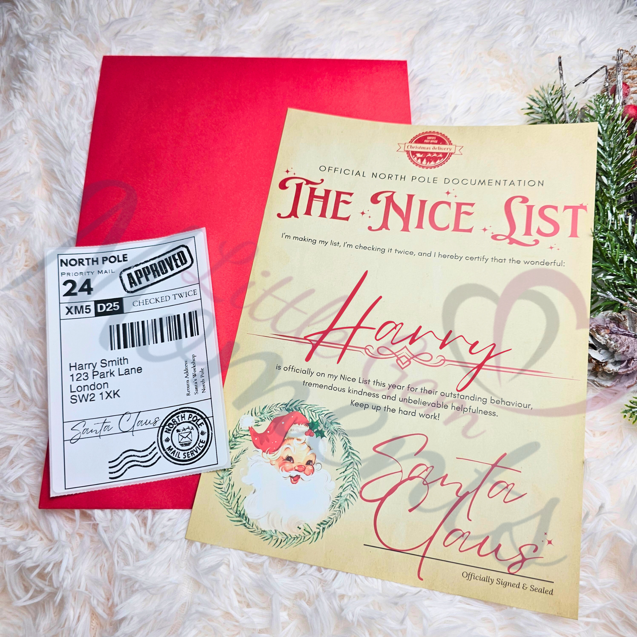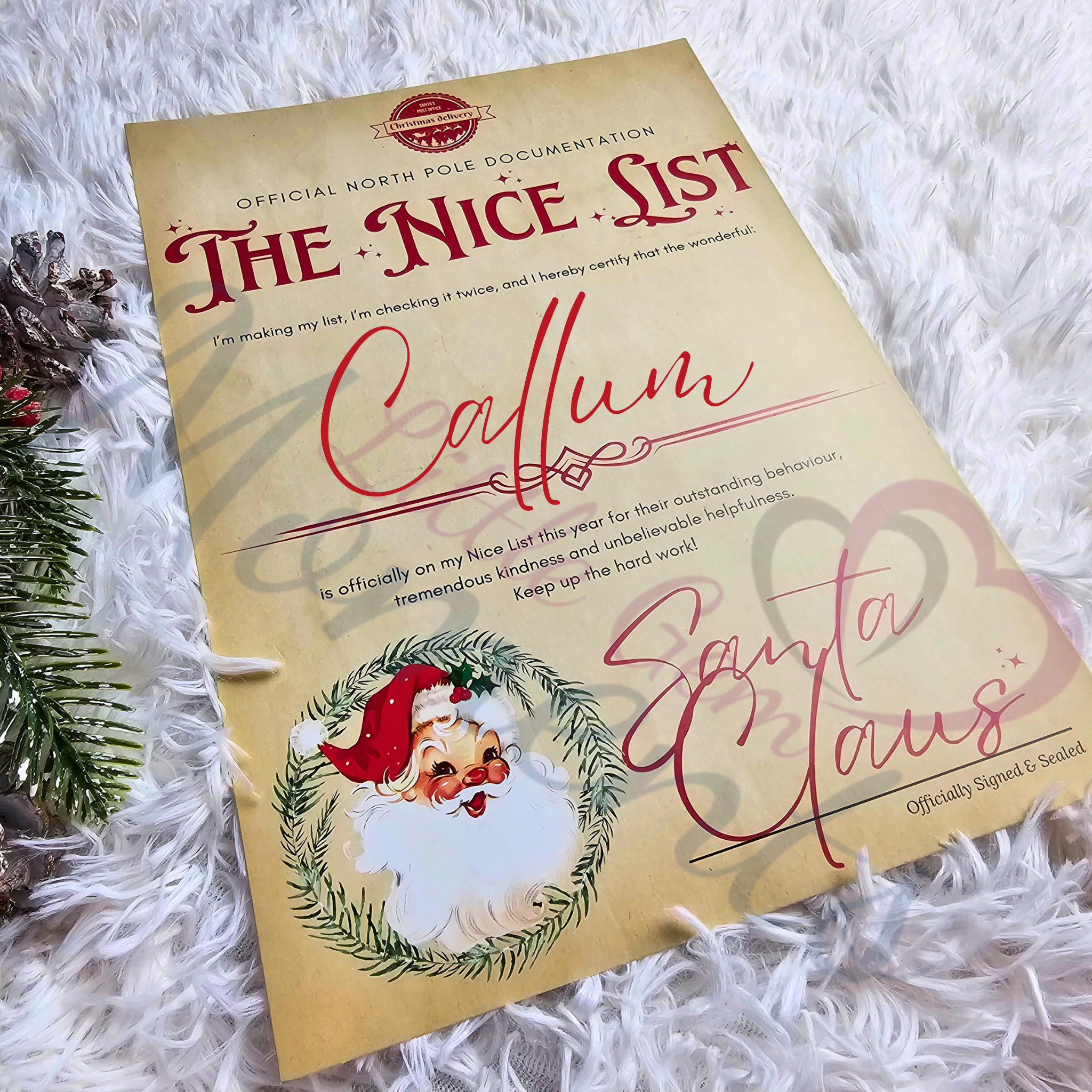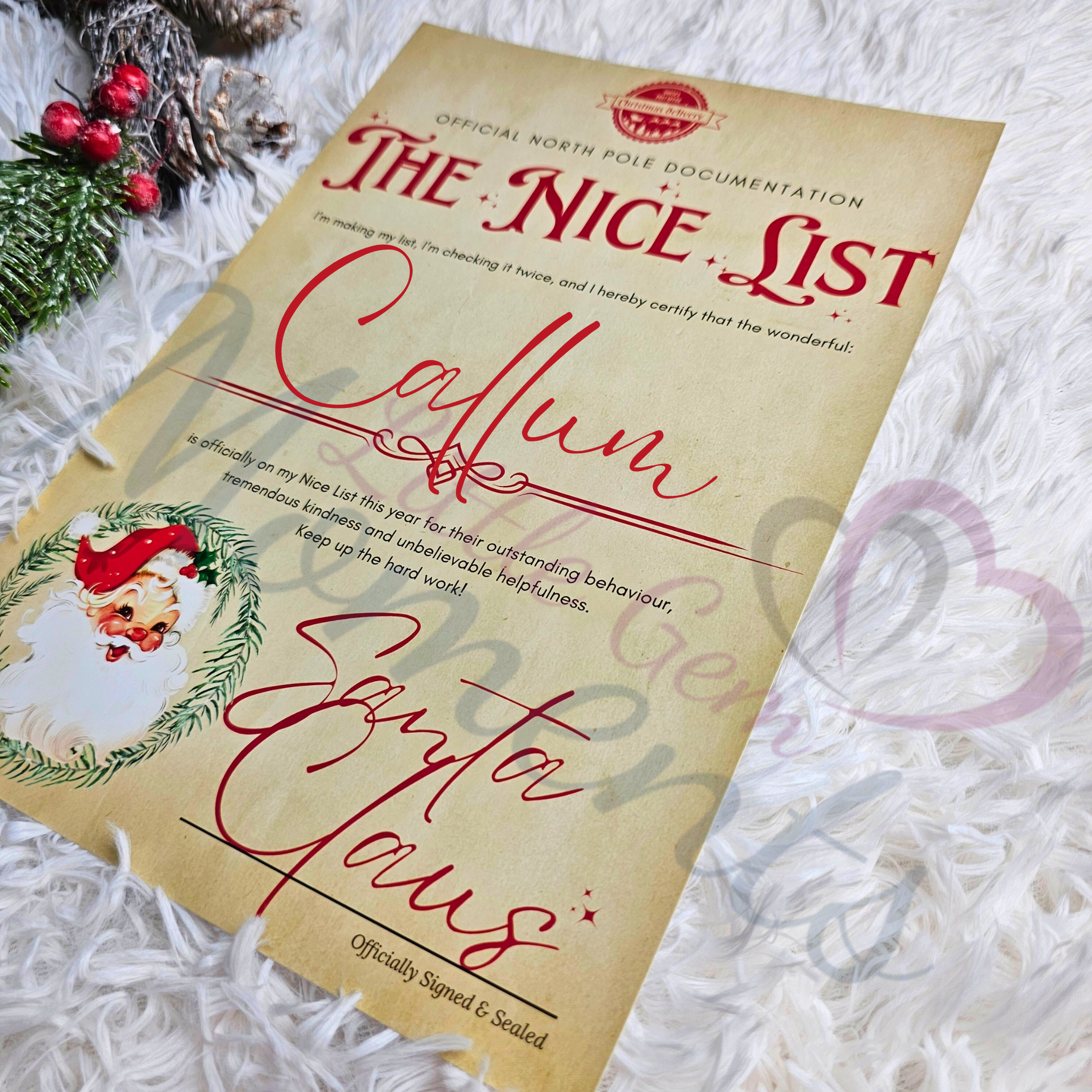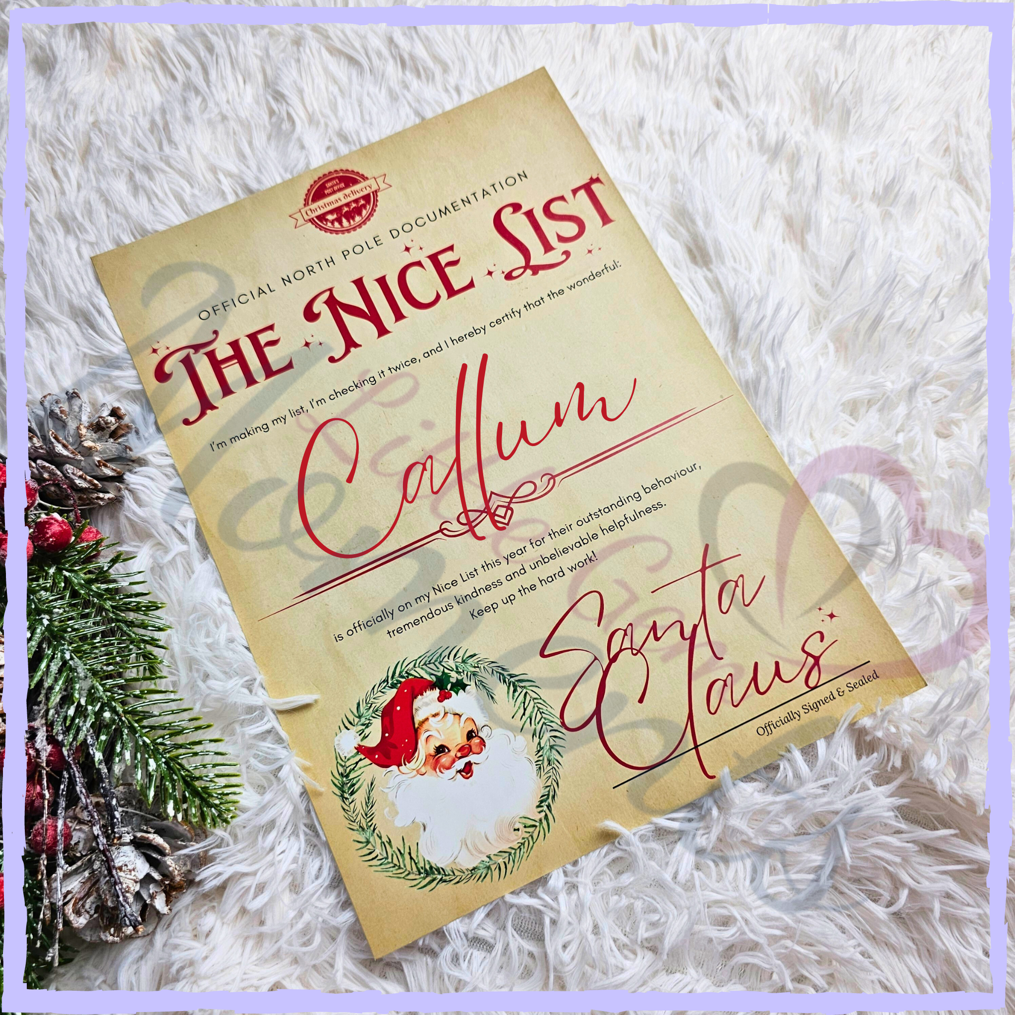 This listing is for the Nice List Certificate with the rustic design and red writing - other colours and styles available on our shop!