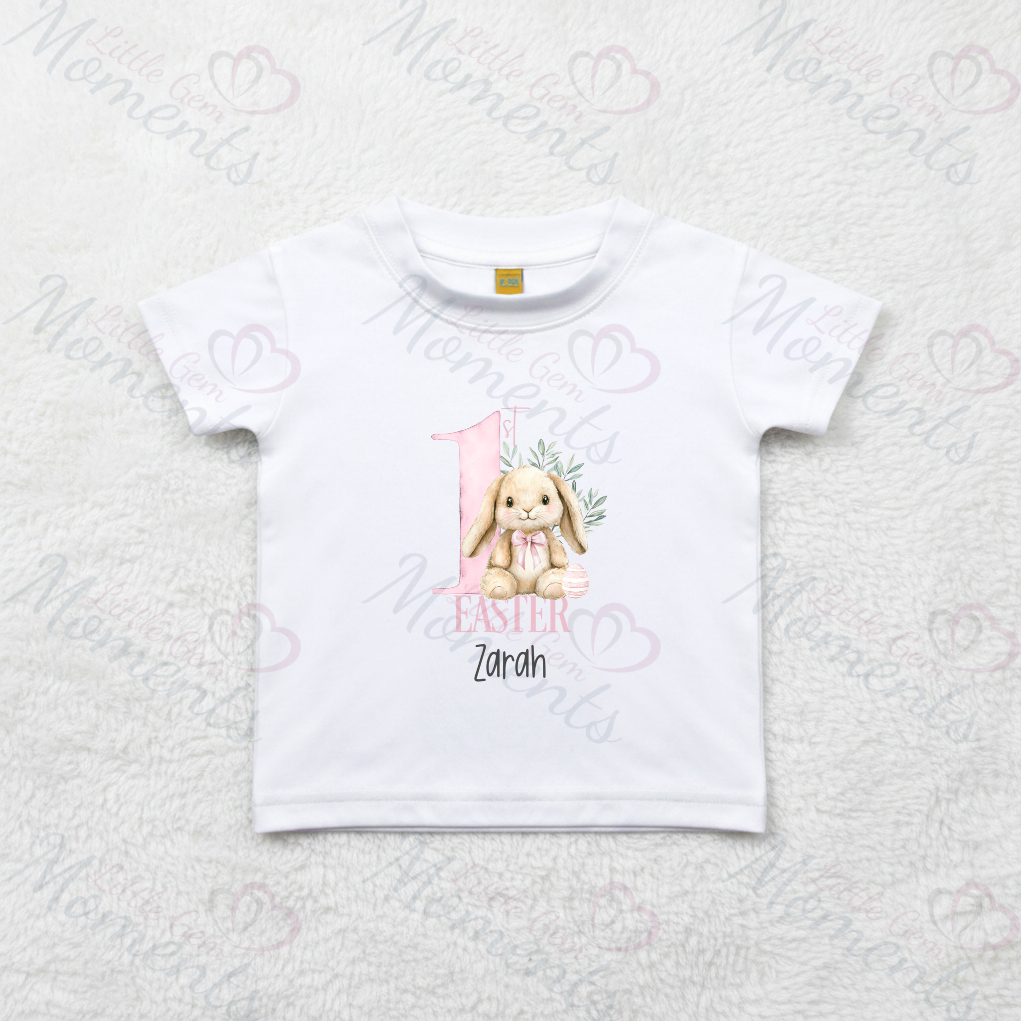 T-shirt features our super cute 1st Easter Bunny design - available in pink or blue (please state when ordering if you have a preference)