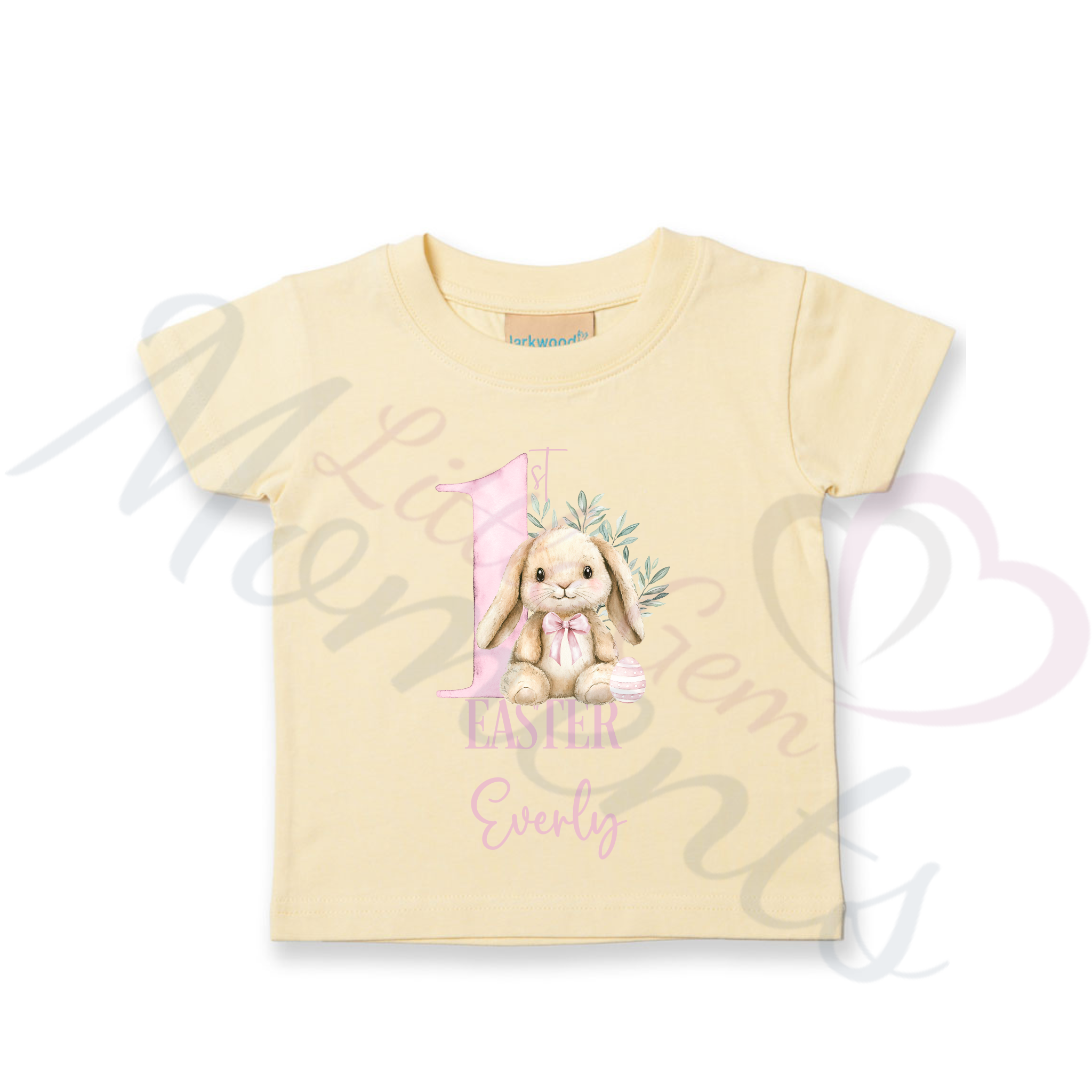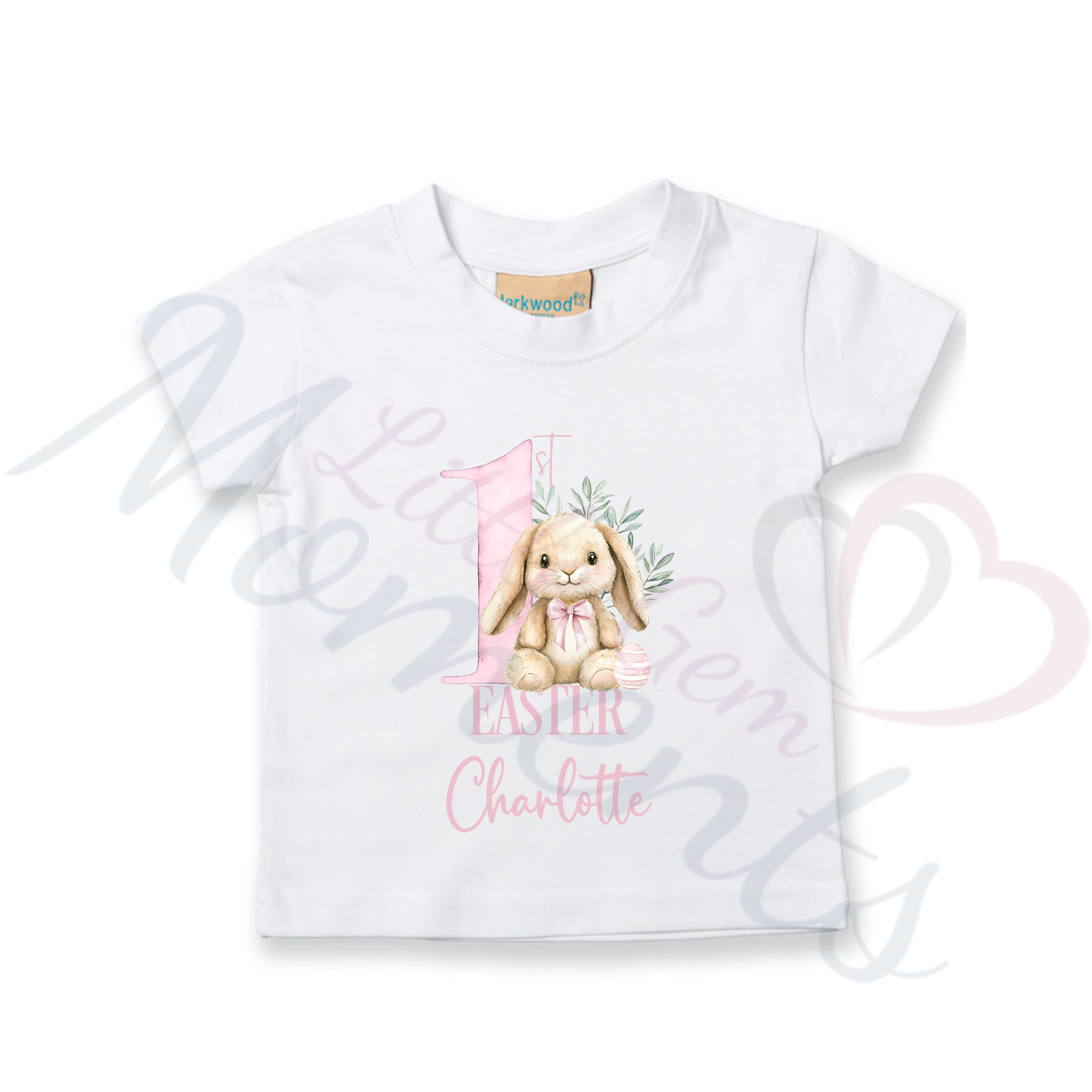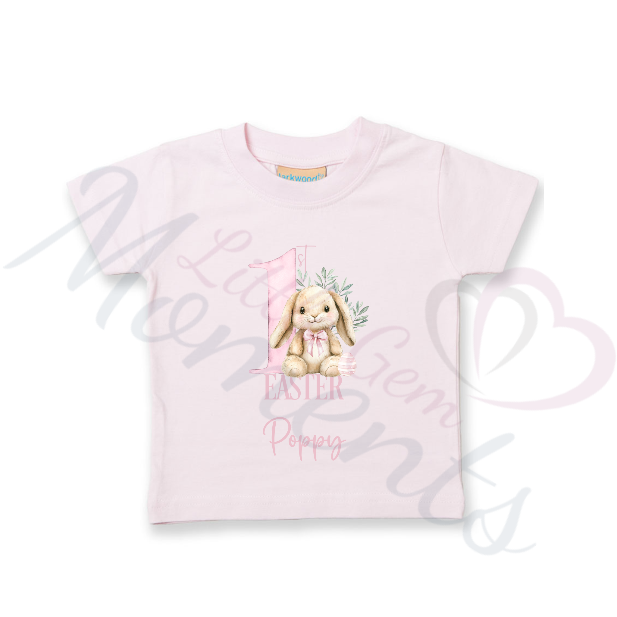 Personalised 1st Easter Kids T-shirt - Pink or Blue Bunny Design
