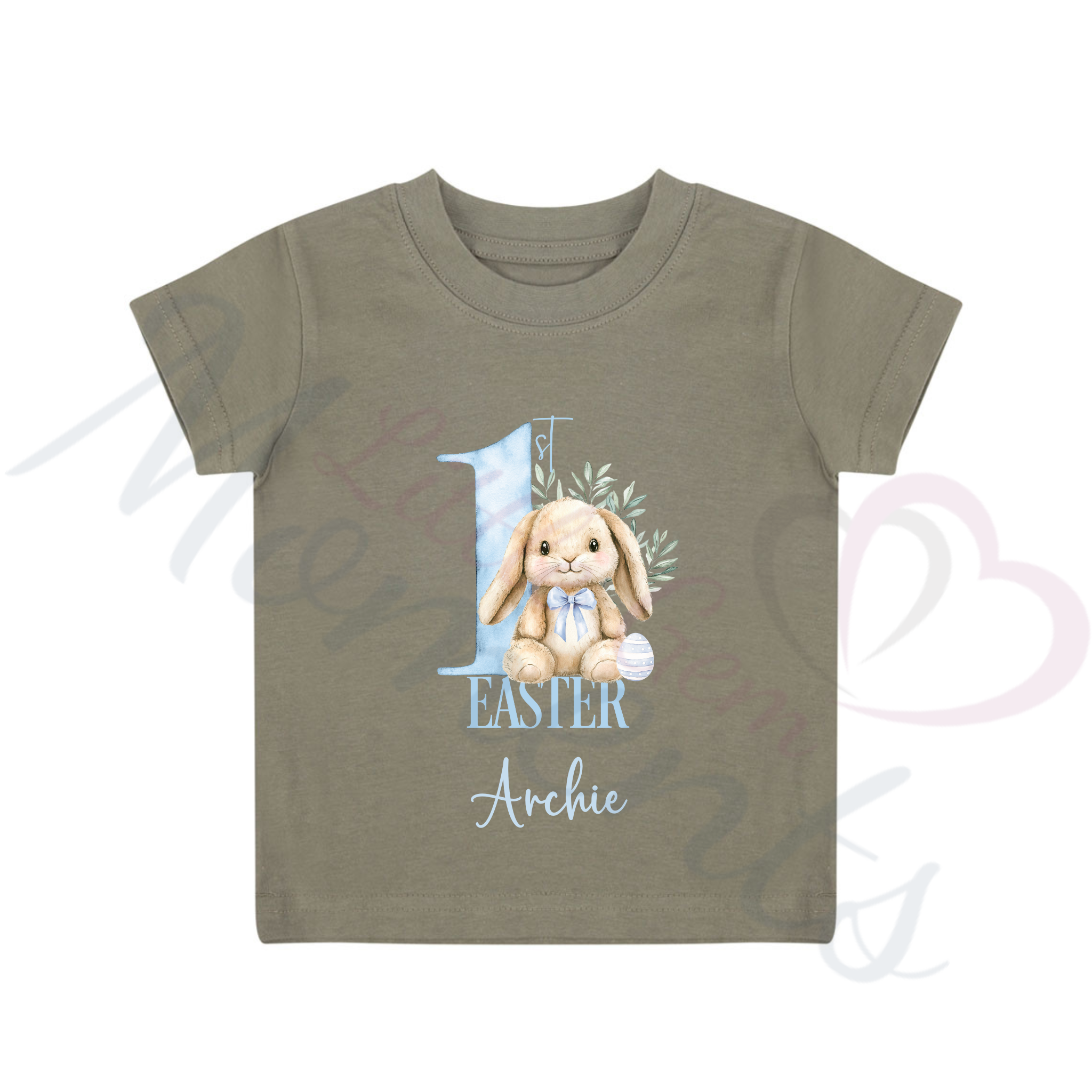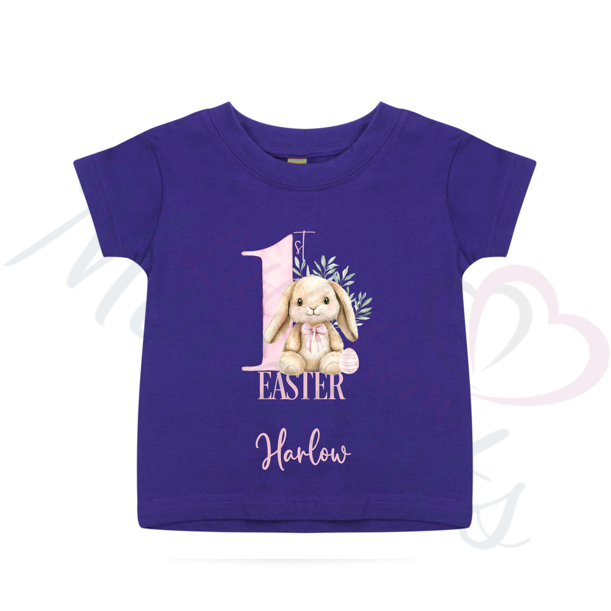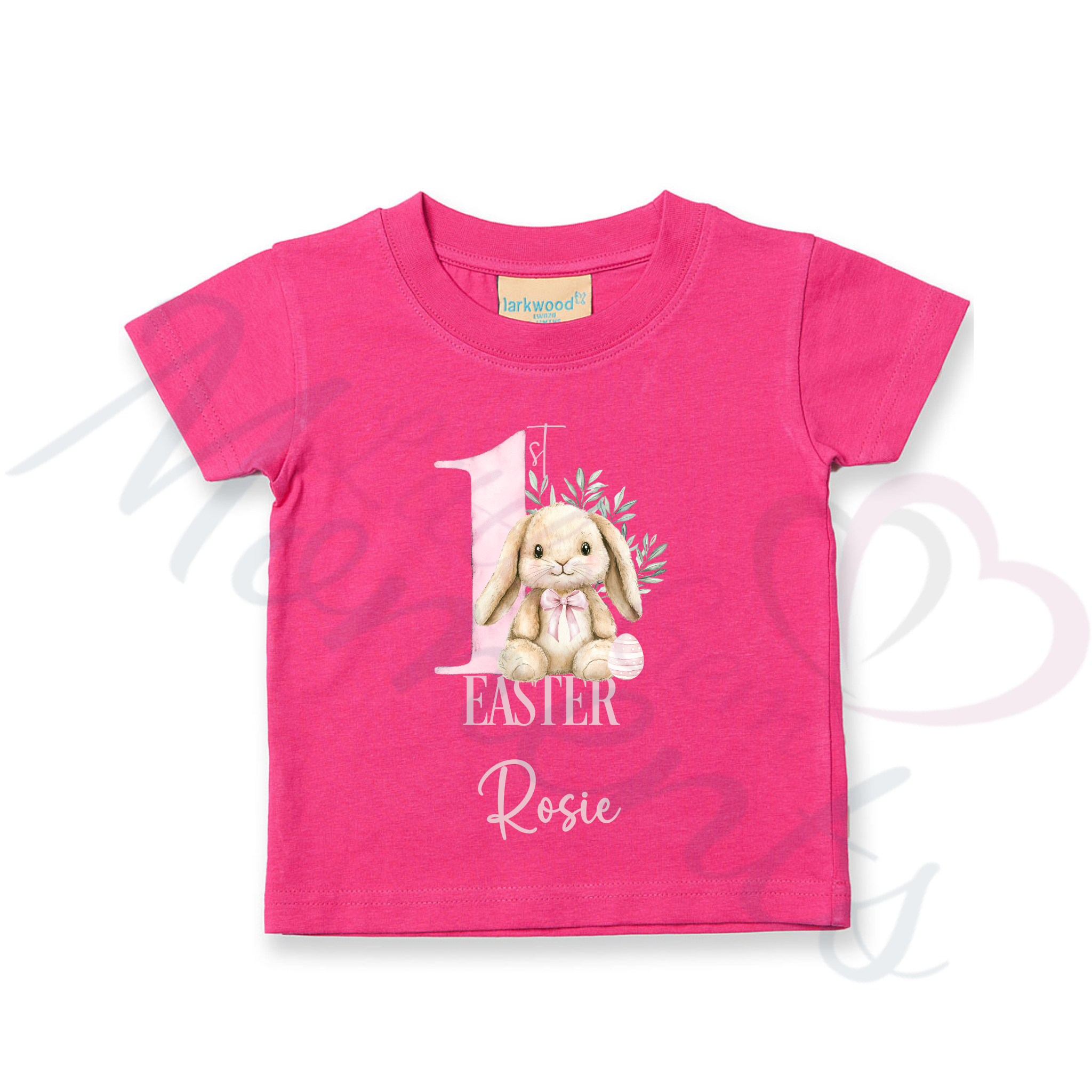 Personalised 1st Easter Kids T-shirt - Pink or Blue Bunny Design