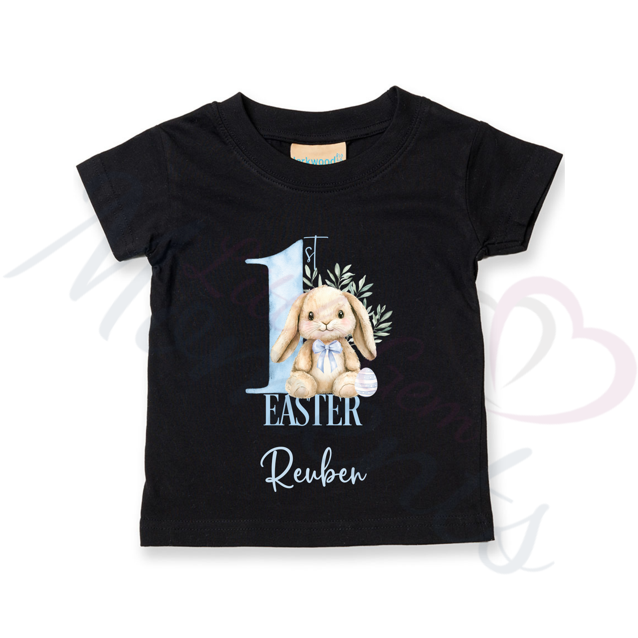 T-shirt features the words "1st Easter" with super cute bunny rabbit image - choose from pink or blue (see images) Please state when ordering