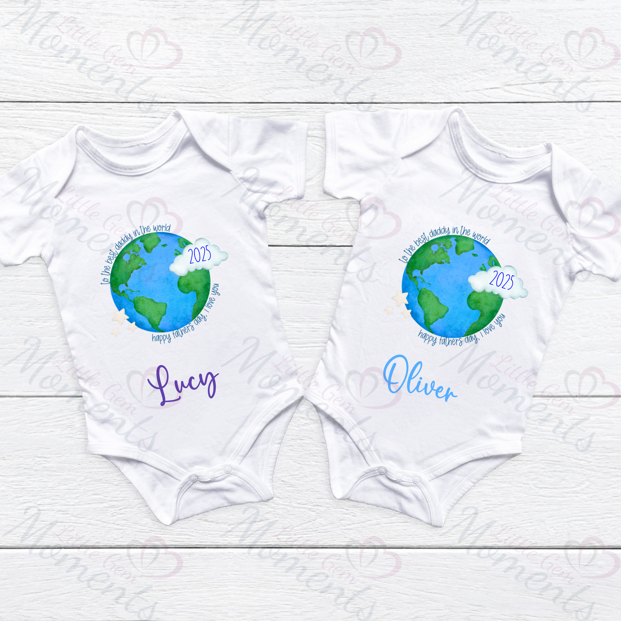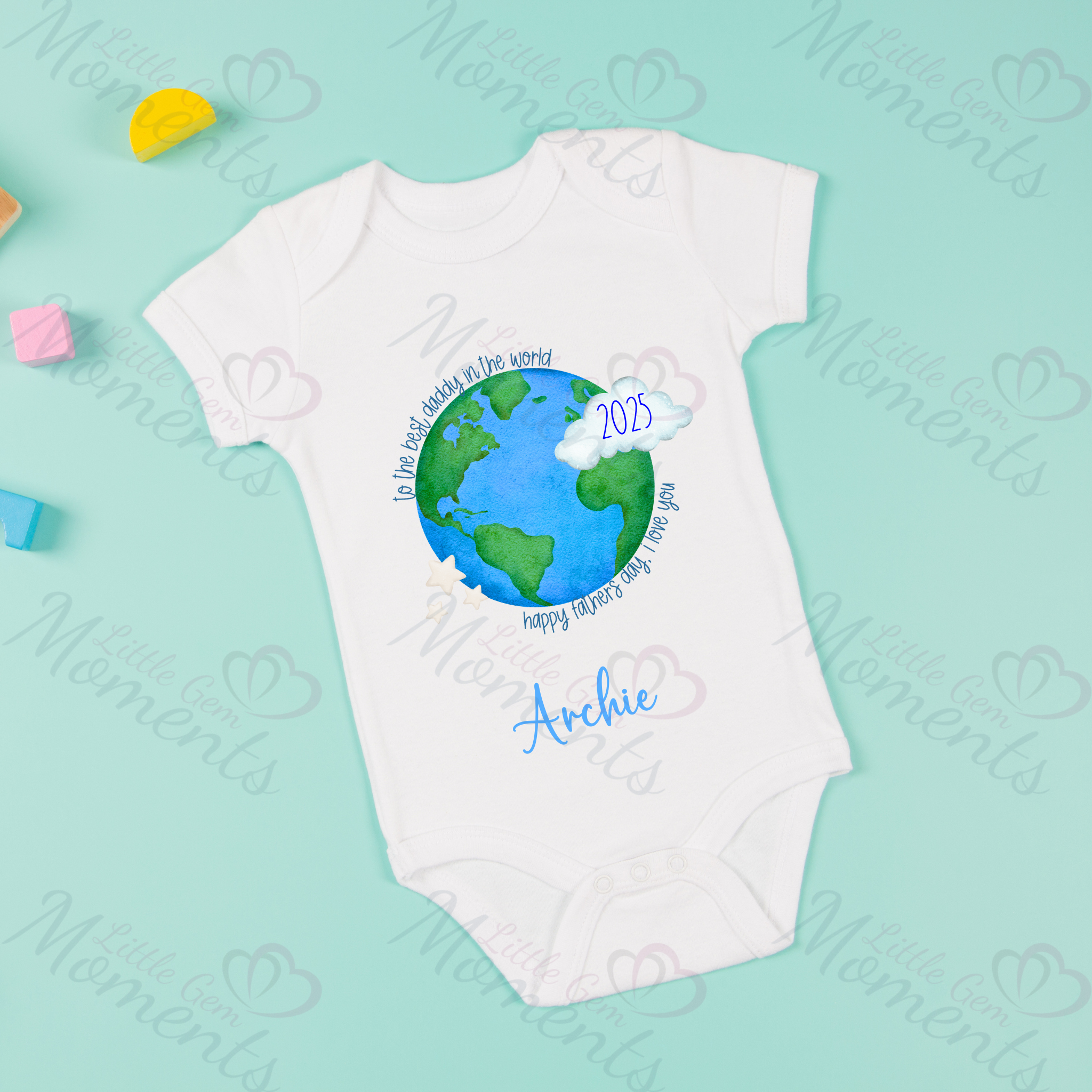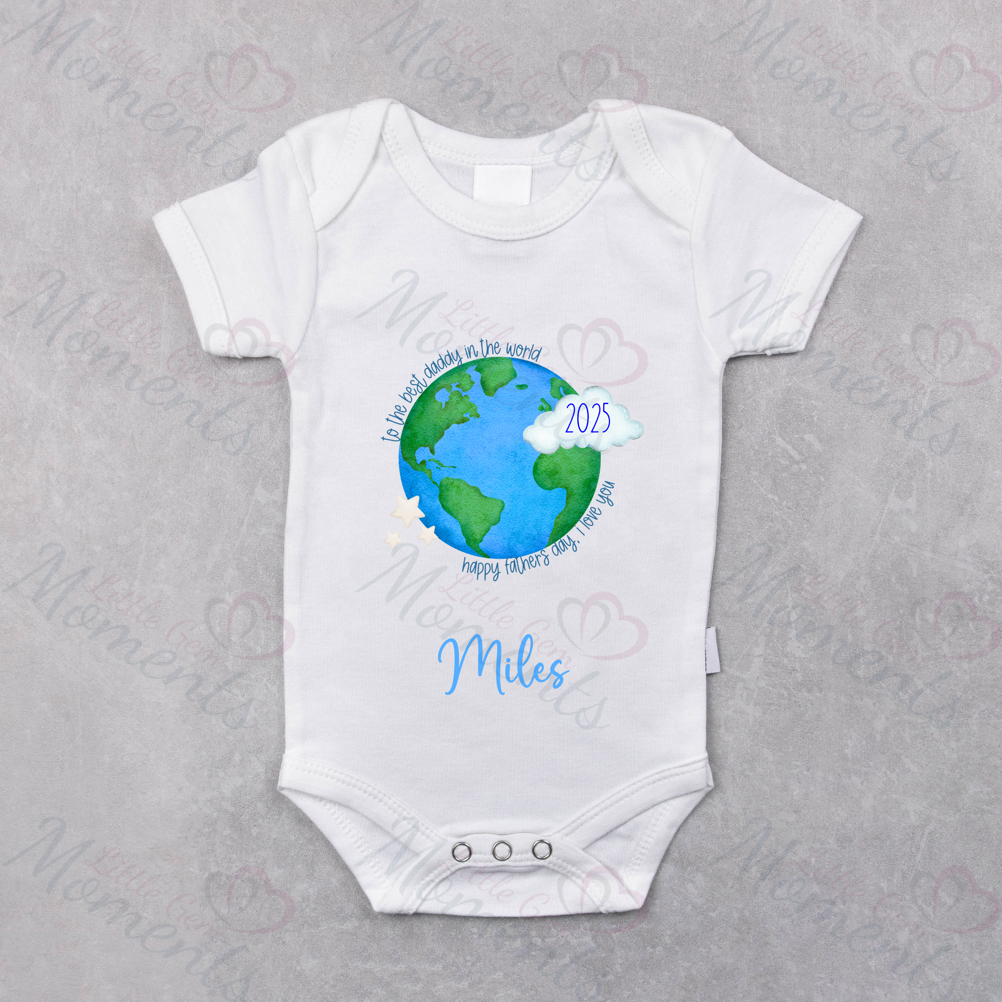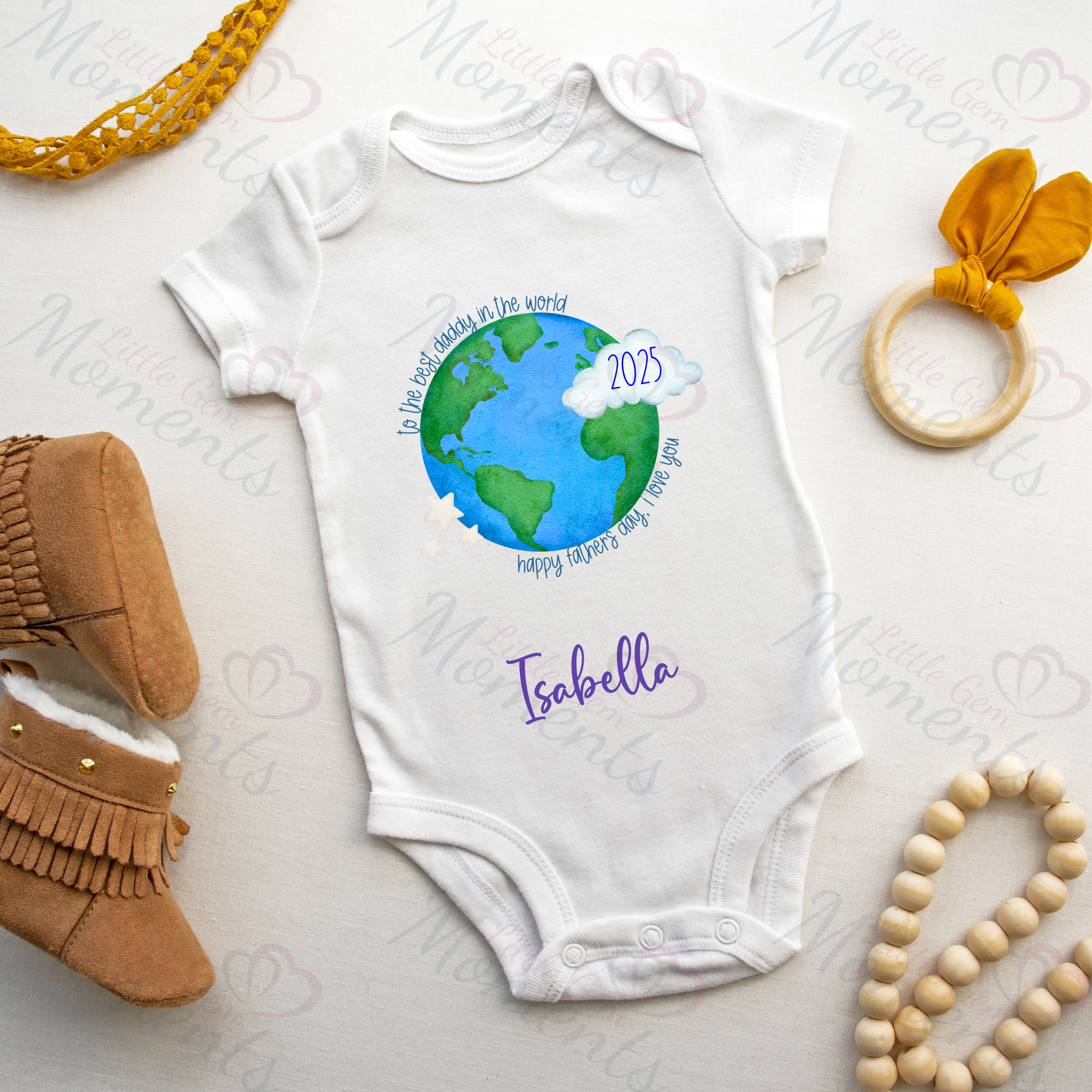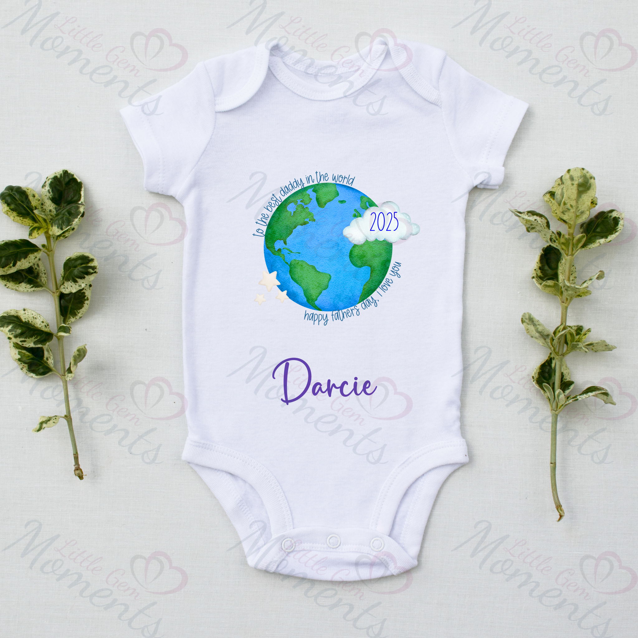 Personalised Best Daddy In The World Bodysuit. Custom Cute Father's Day Baby Vest