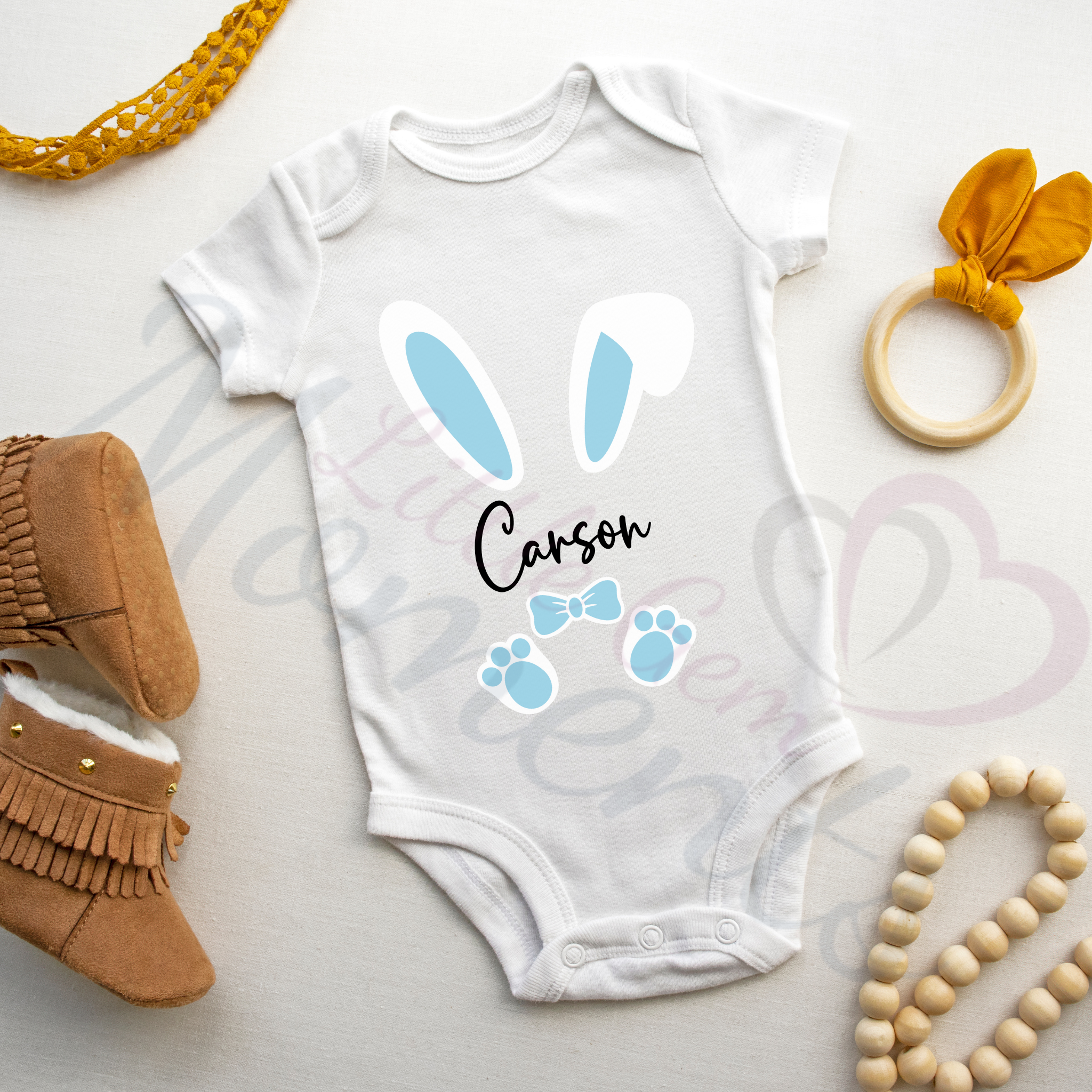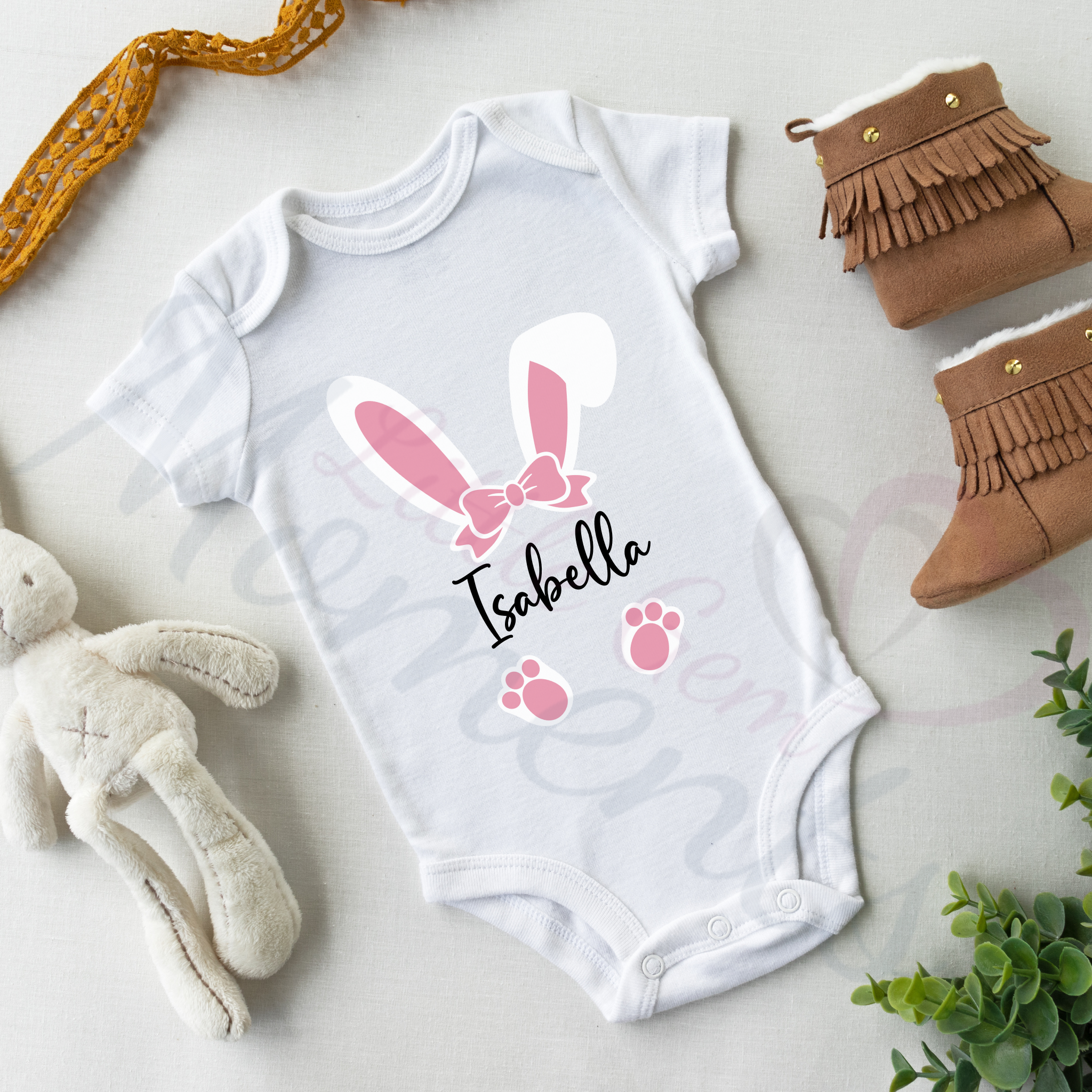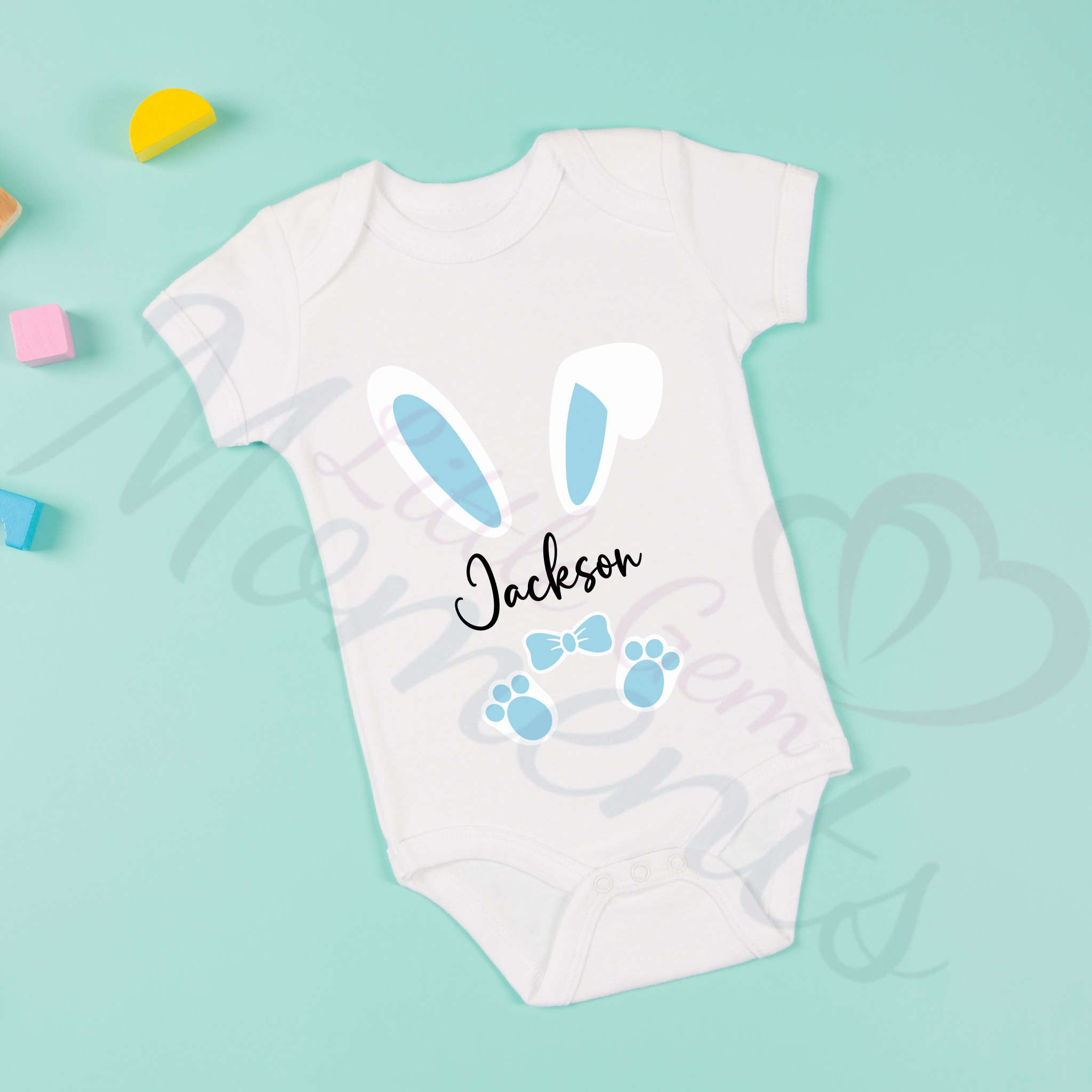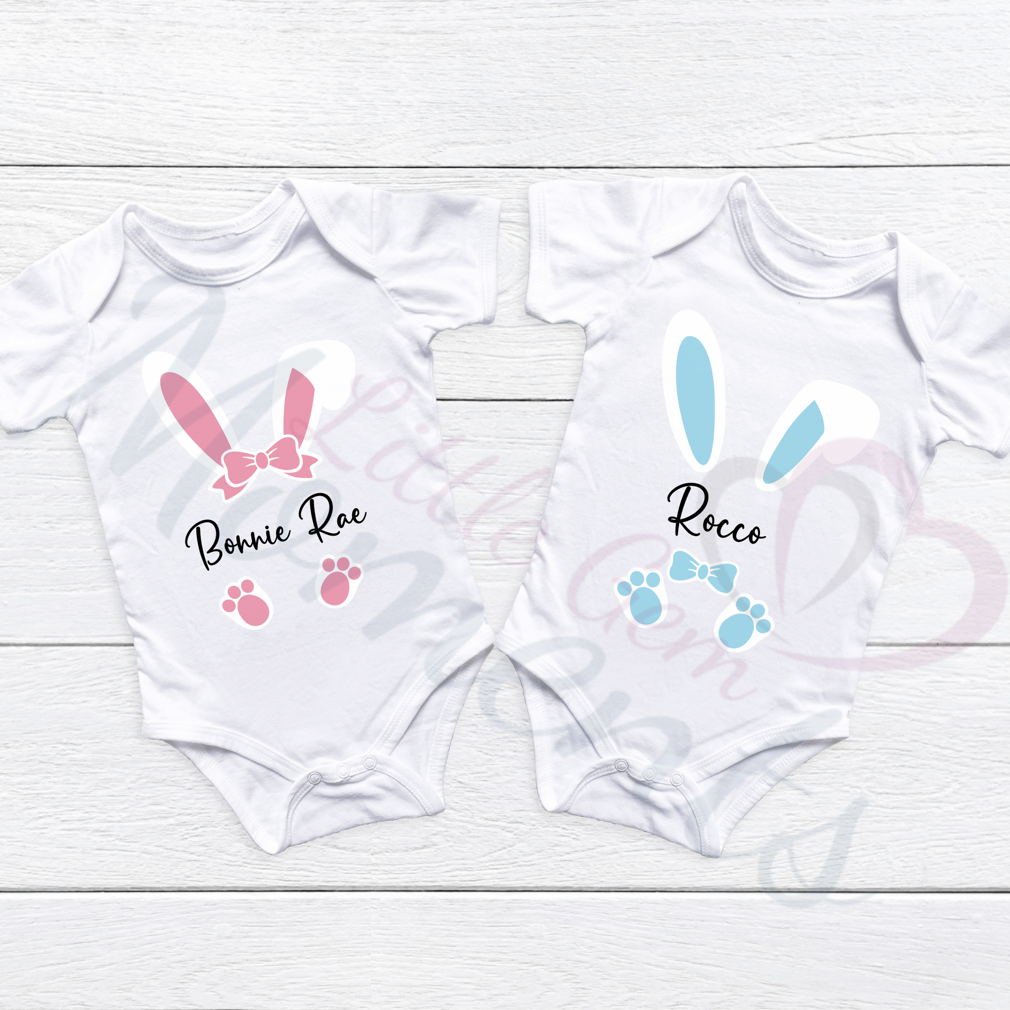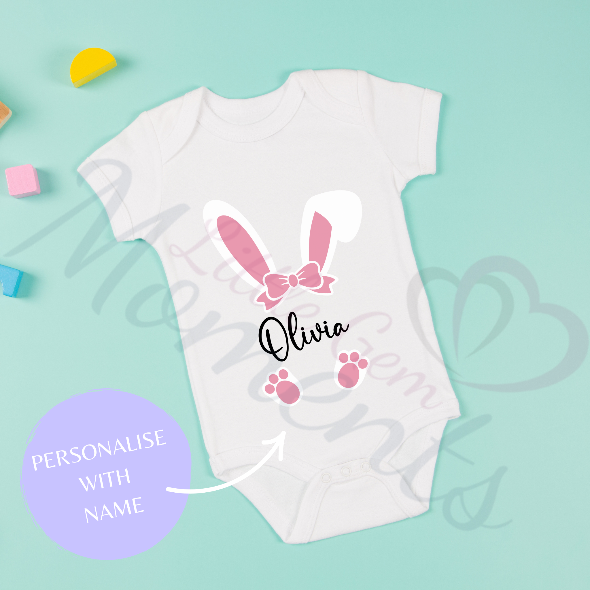 Personalised Easter Bunny Baby Bodysuit. Custom Cute Baby Vest - Pink or Blue Design
