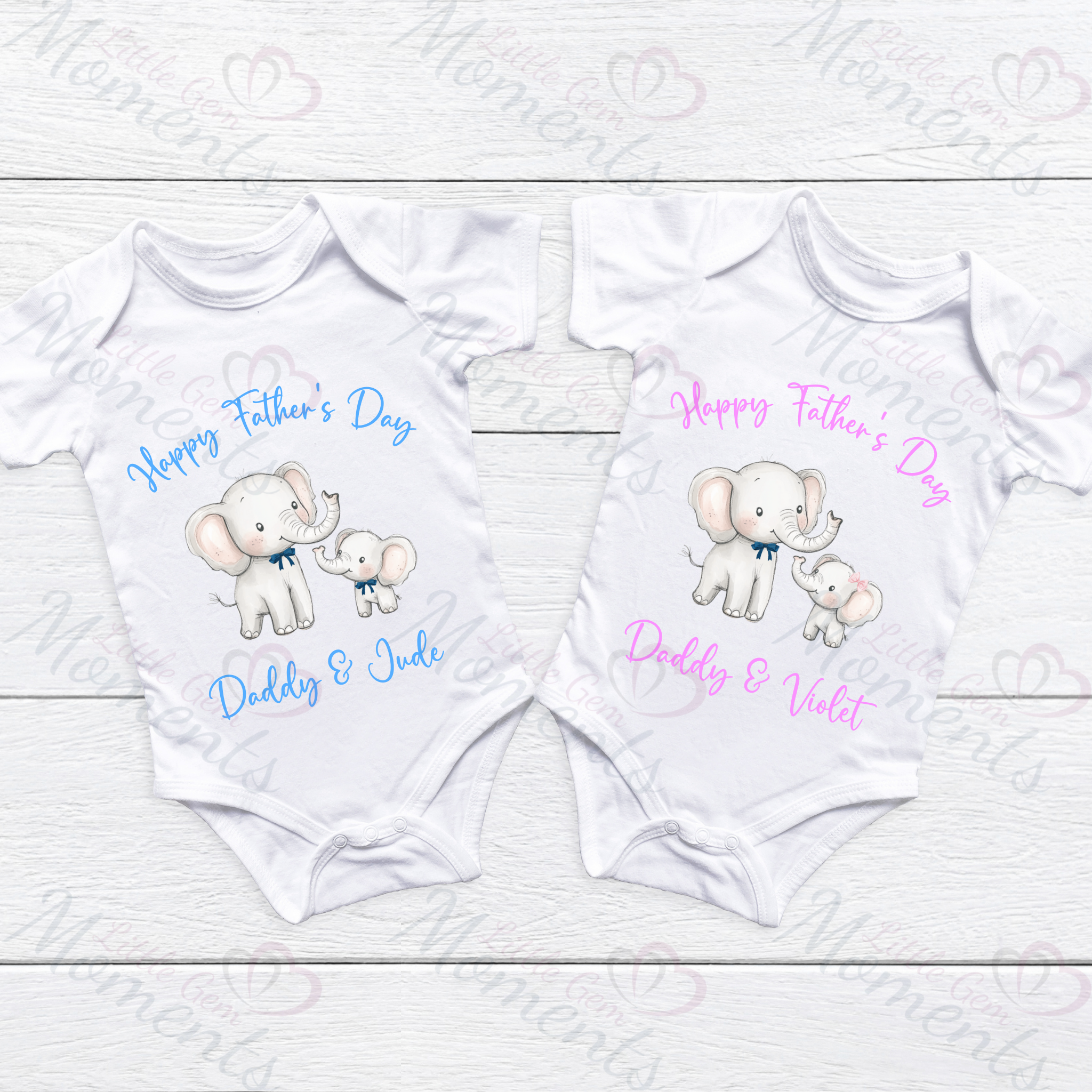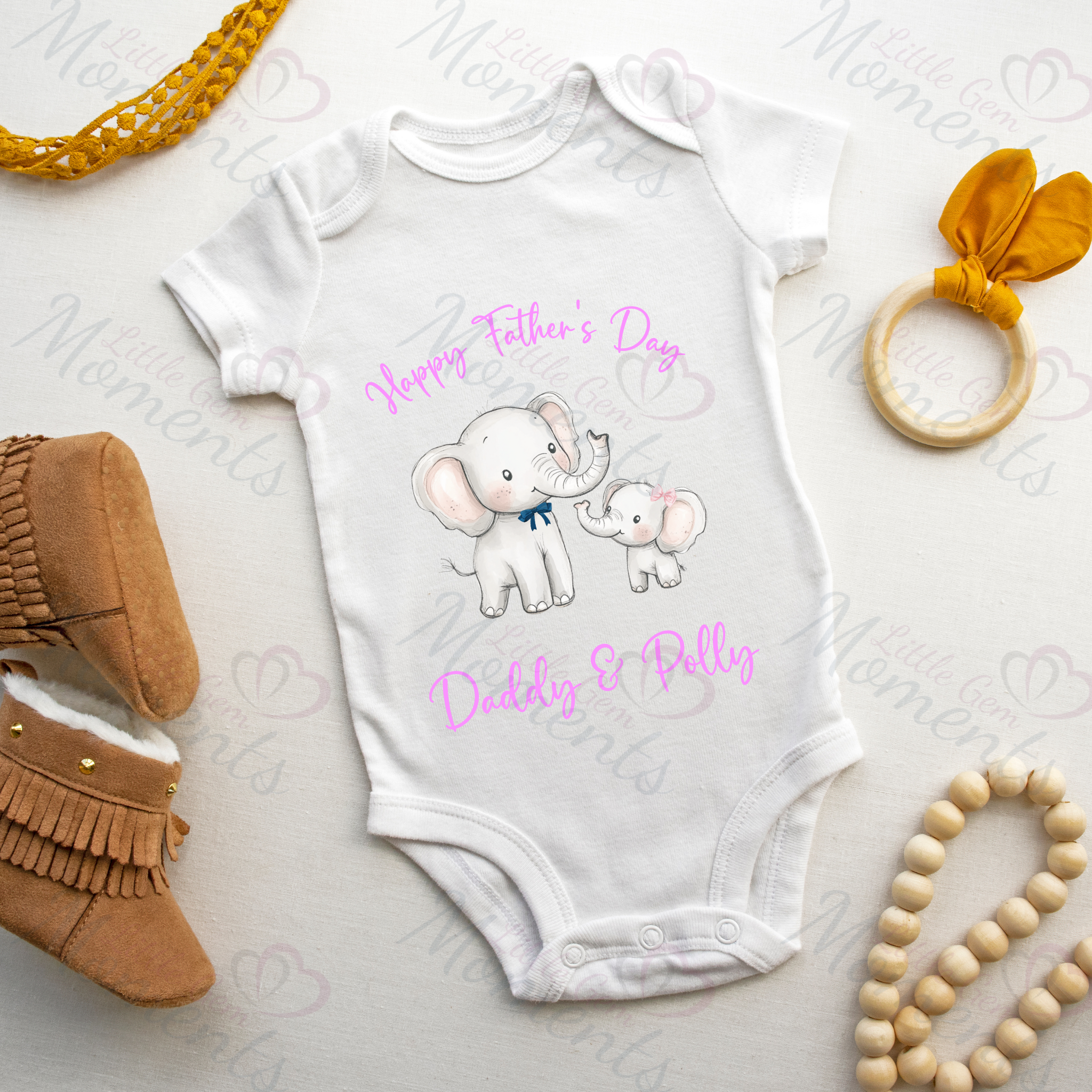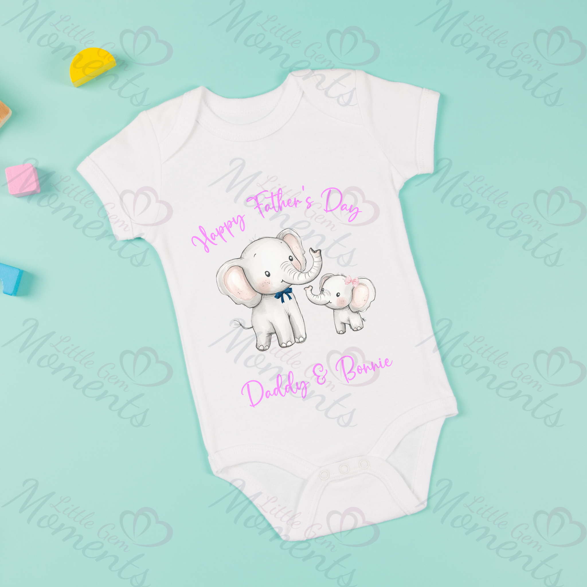 Personalised Happy Father's Day Baby Bodysuit. Custom Cute Father's Day Baby Vest - Elephant Design - Pink or Blue