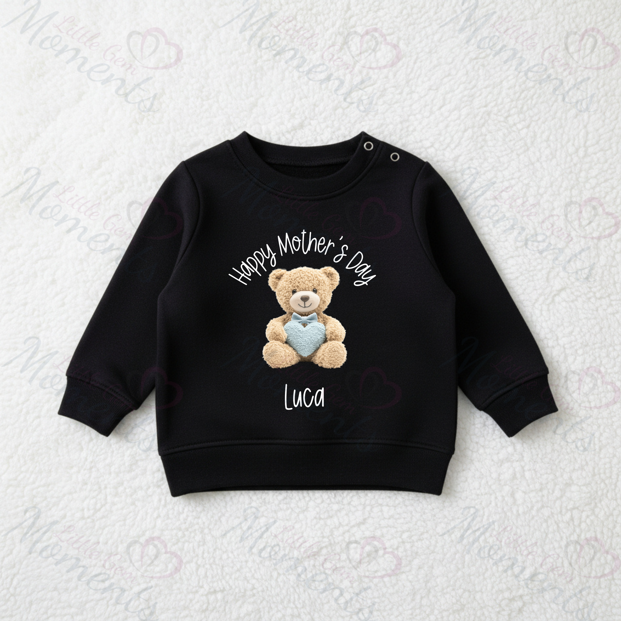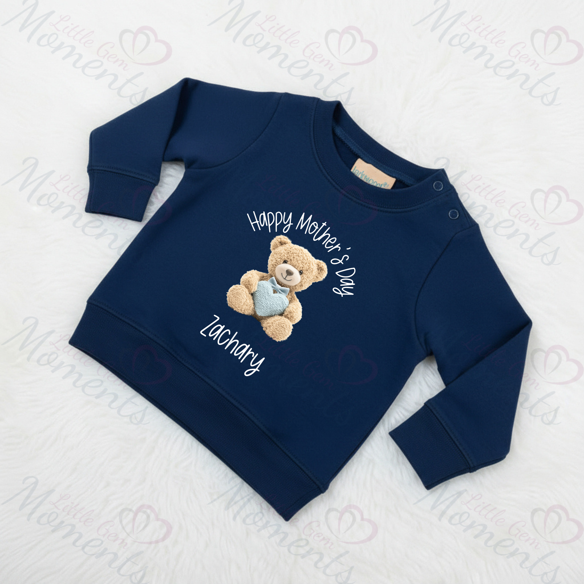 Personalised Happy Mother's Day Sweatshirt. Baby/Toddler Jumper - Teddy Heart Design 2