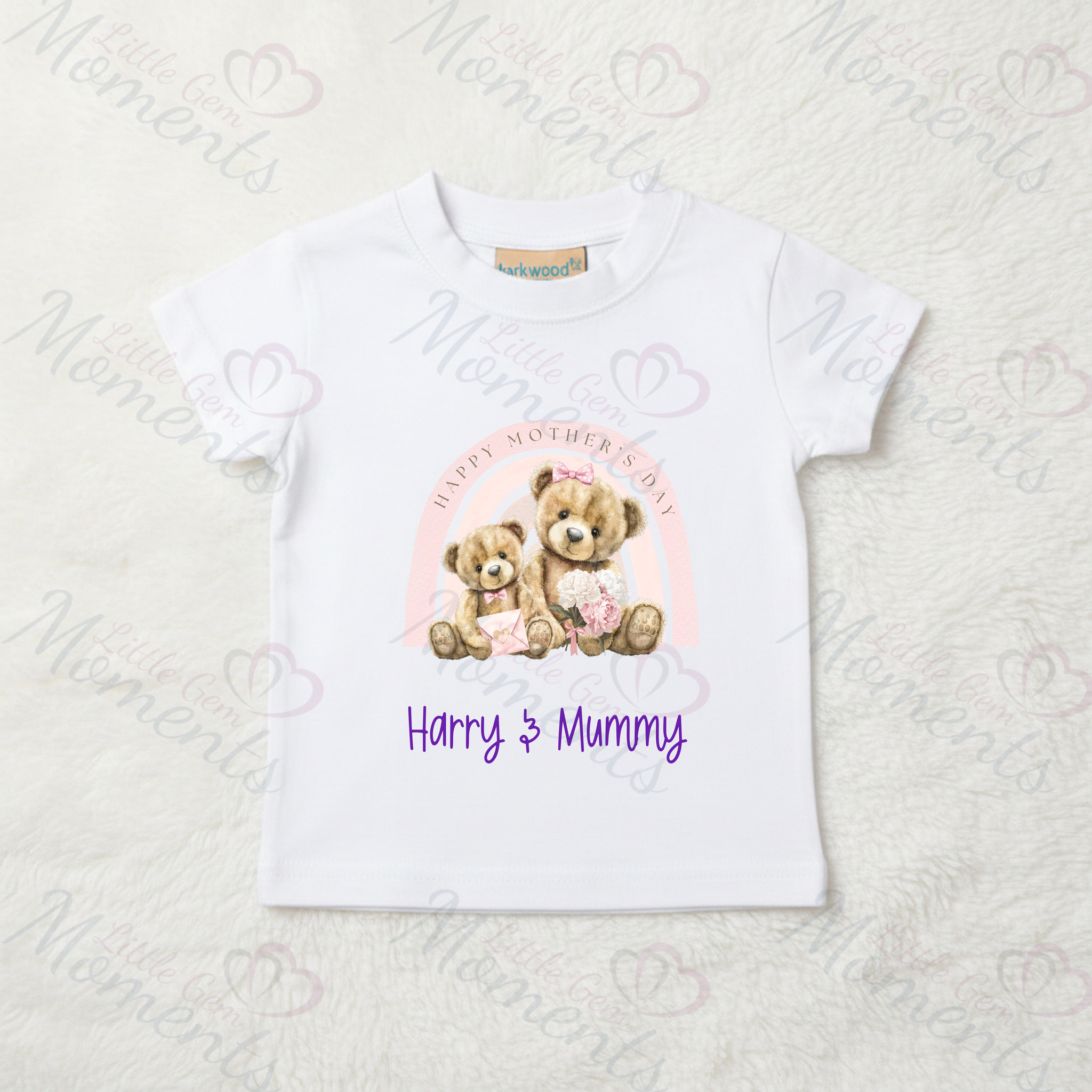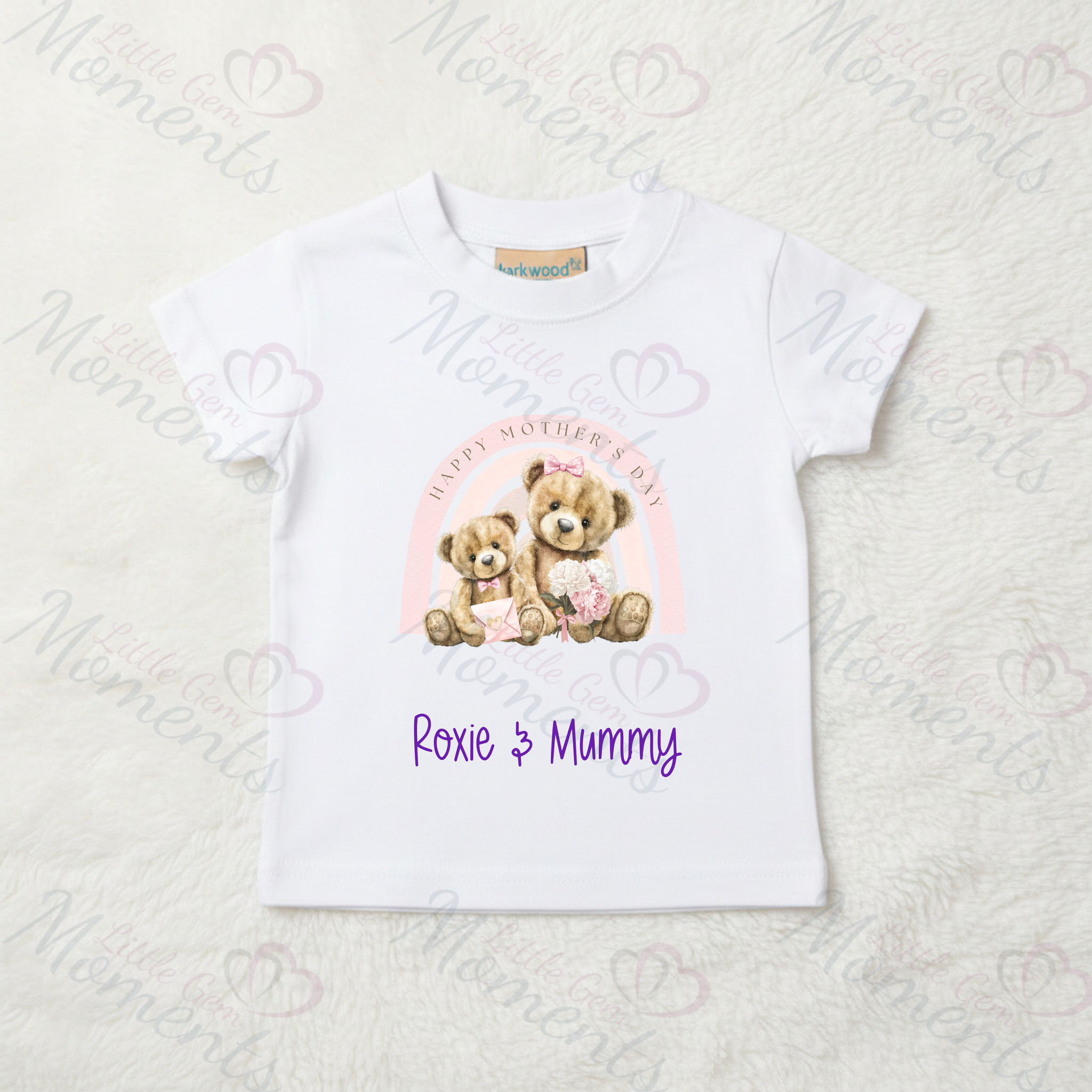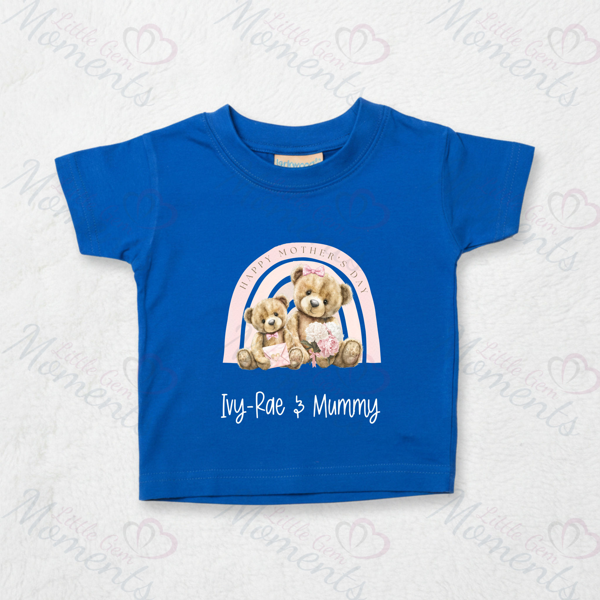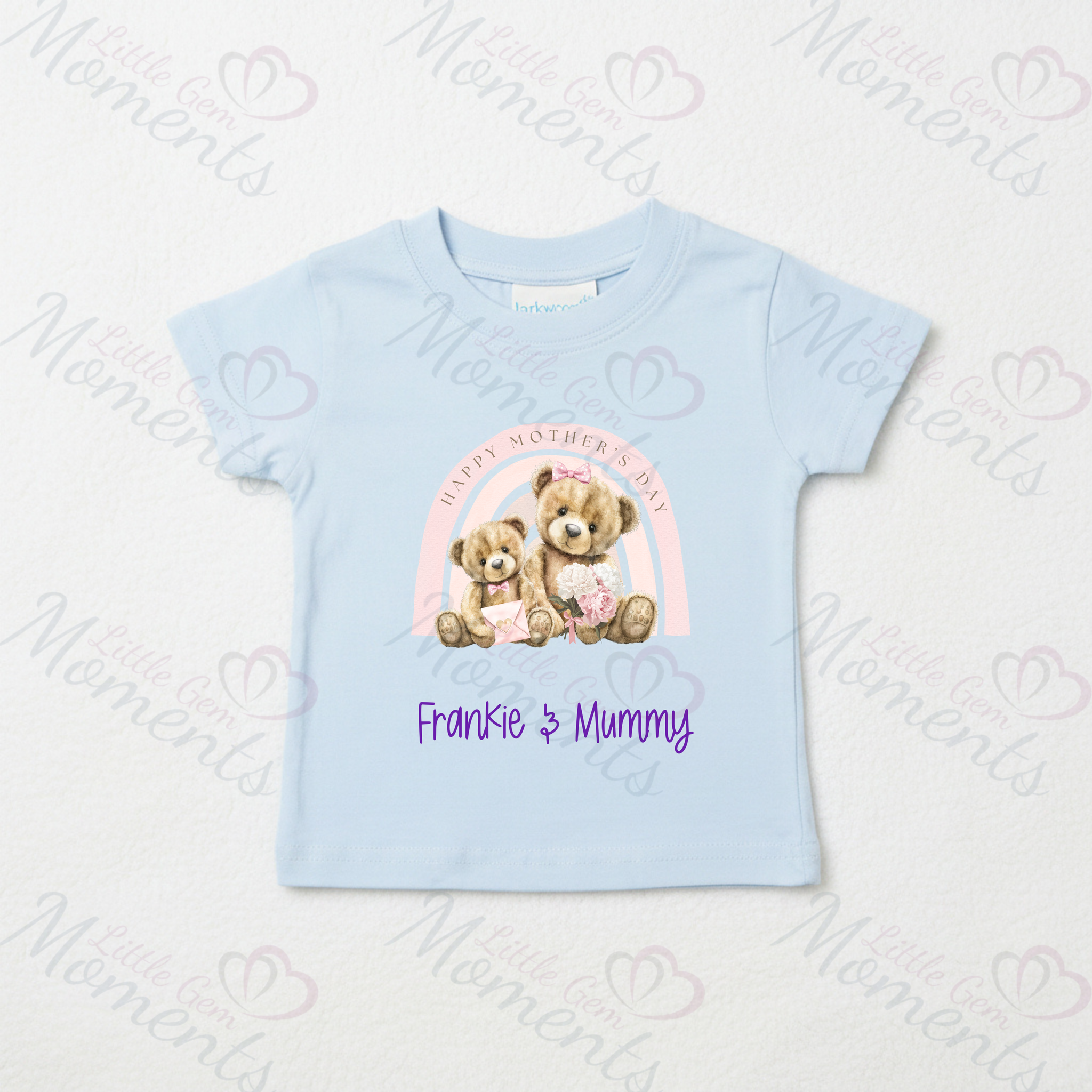 Personalised Happy Mother's Day T-shirt - Teddy Rainbow Design - Pink or Blue