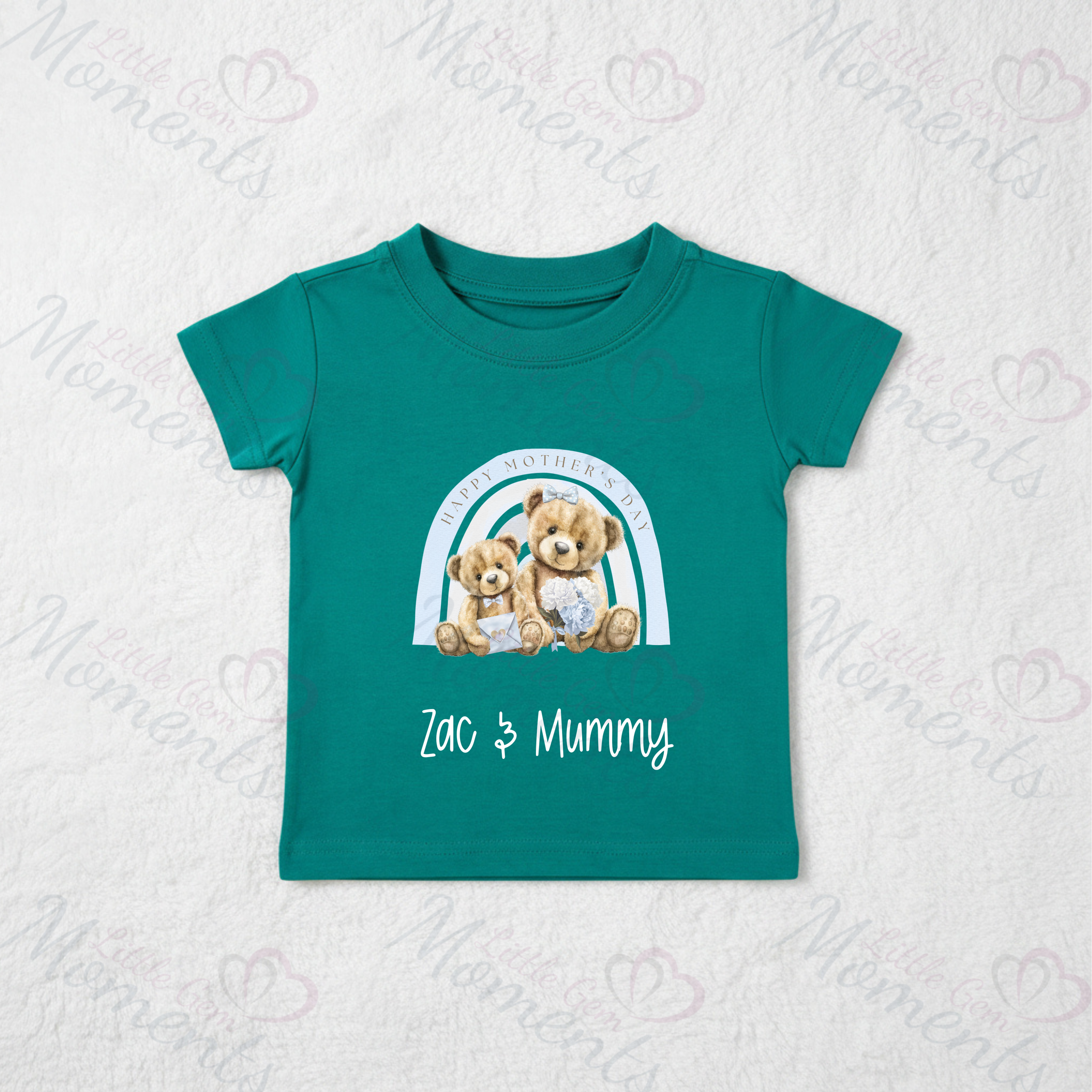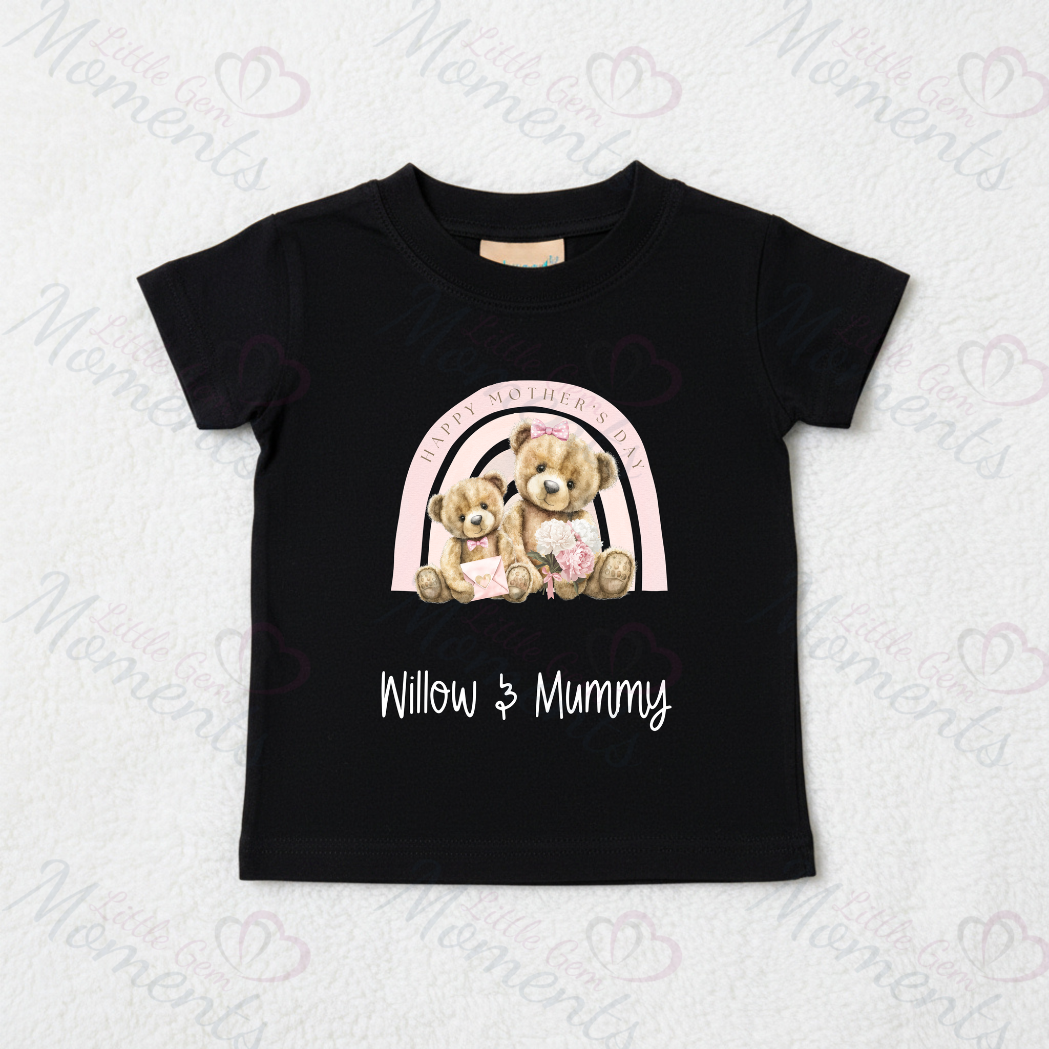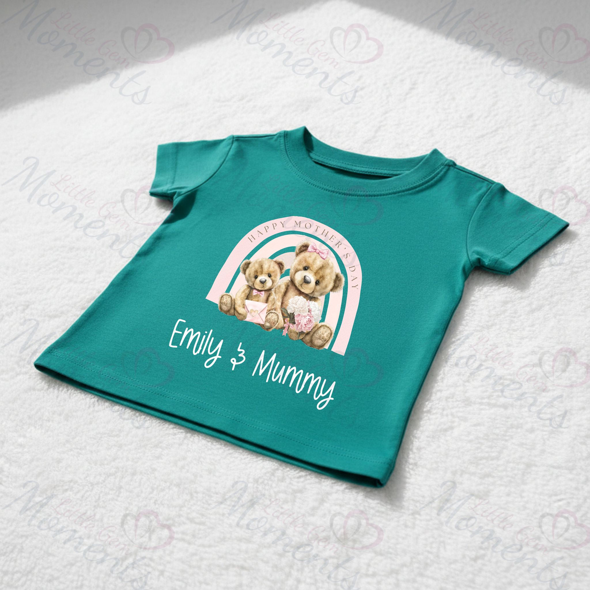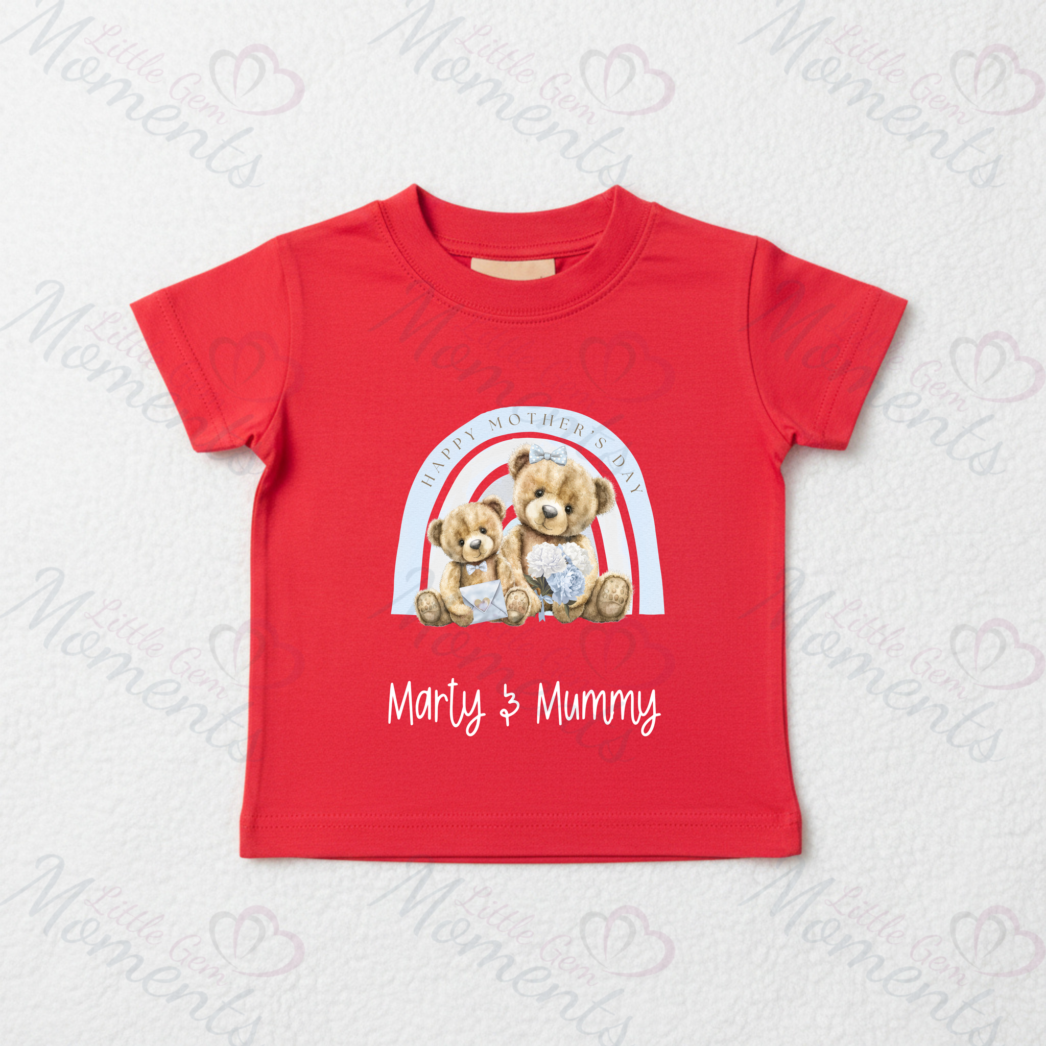 Personalised Happy Mother's Day T-shirt - Teddy Rainbow Design - Pink or Blue