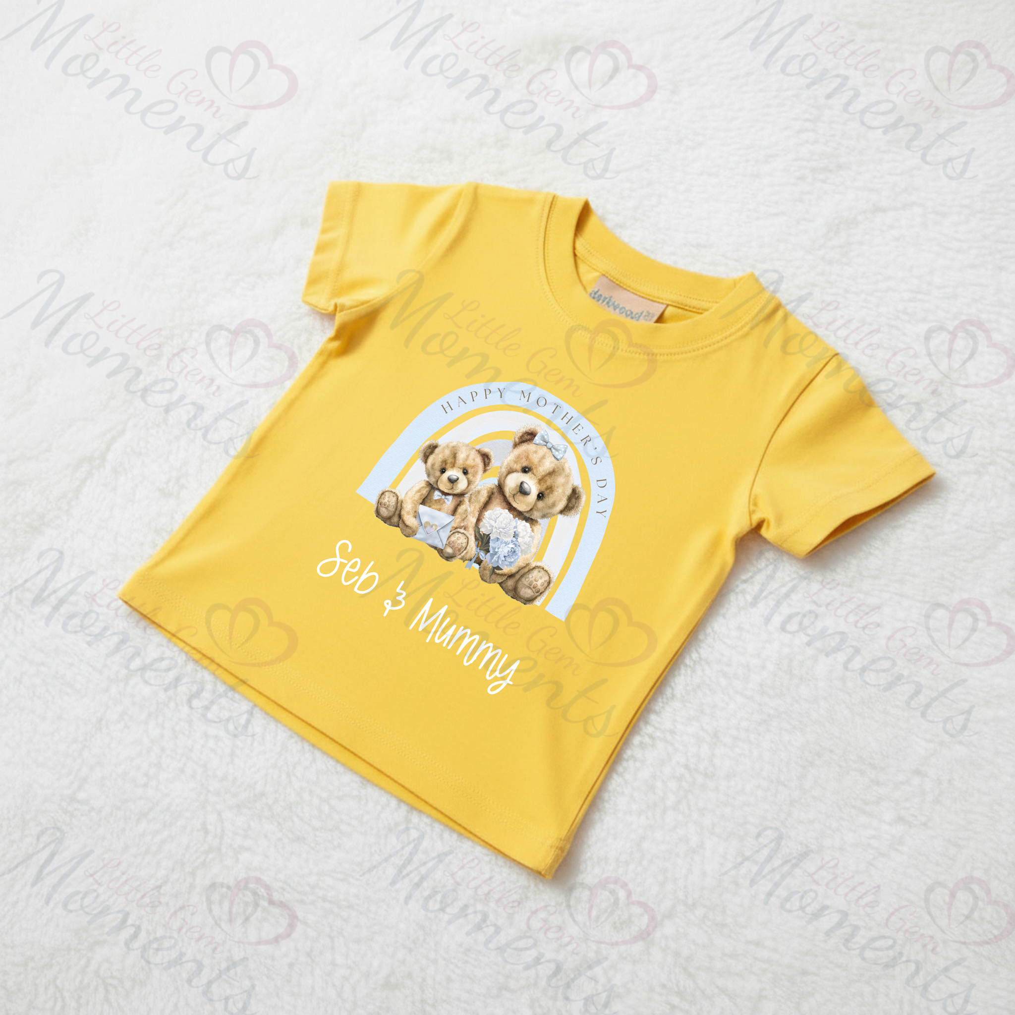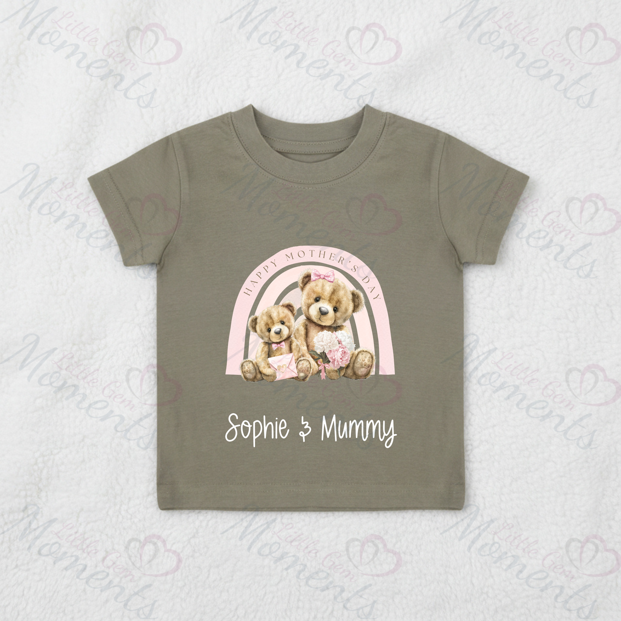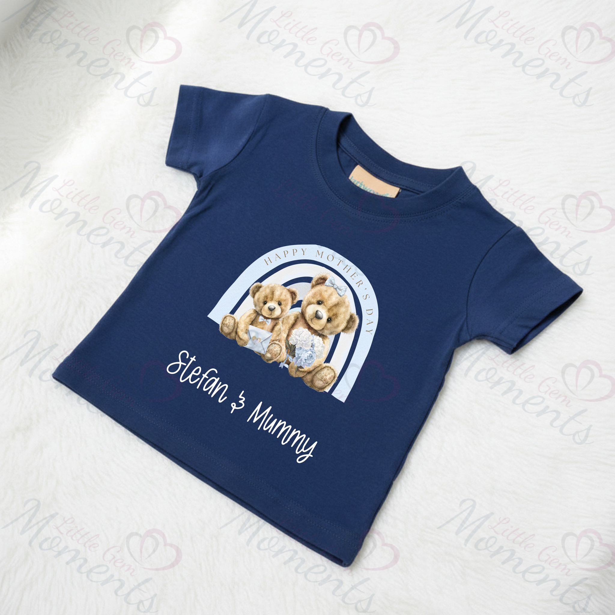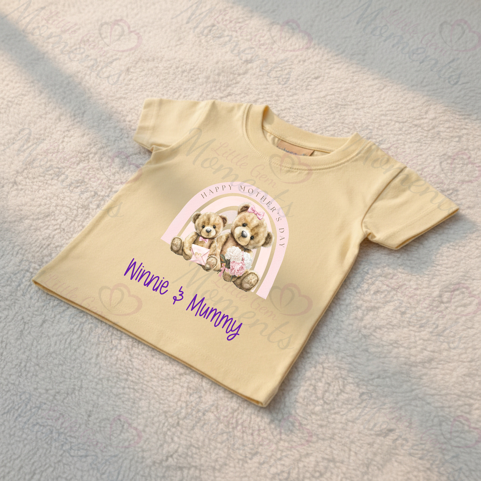 Personalised Happy Mother's Day T-shirt - Teddy Rainbow Design - Pink or Blue
