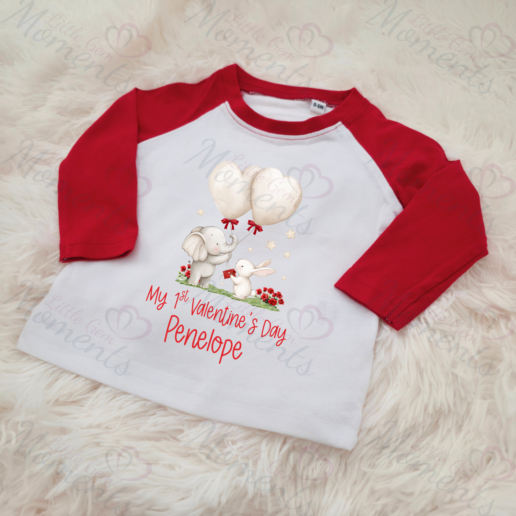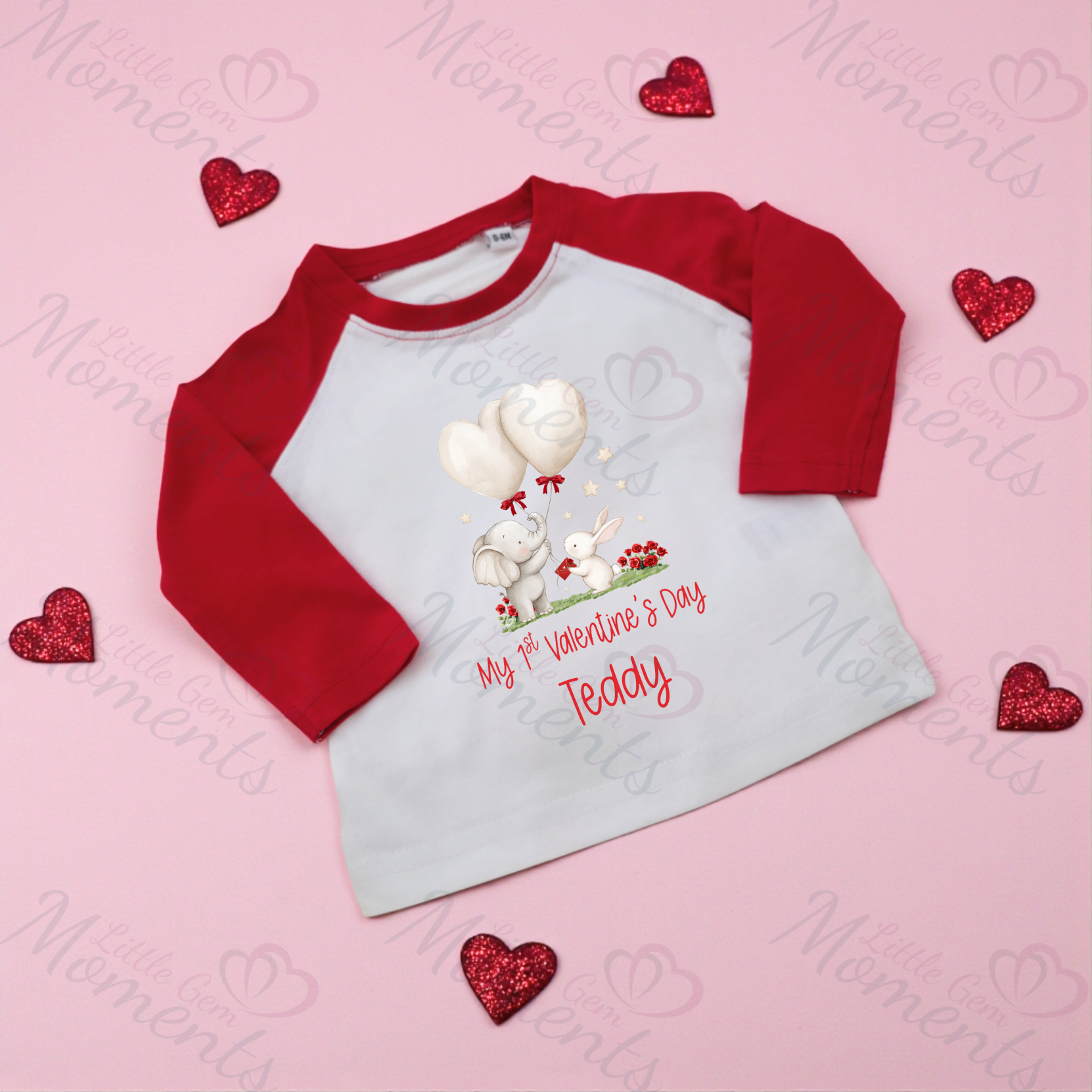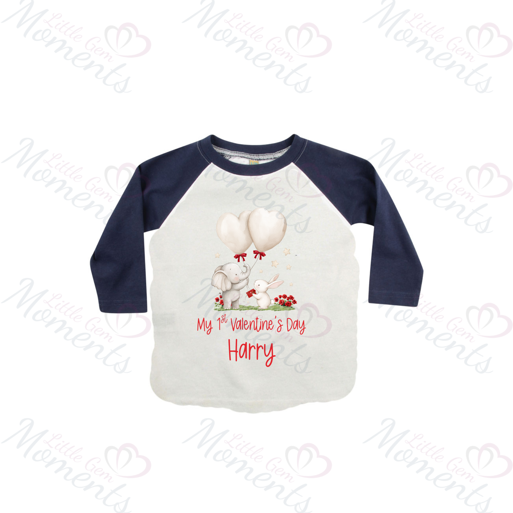 Personalised Mummy's Little Valentine Long Sleeved Top. Kids Valentine's Outfit - Red or Navy - Elephant and Bunny Design