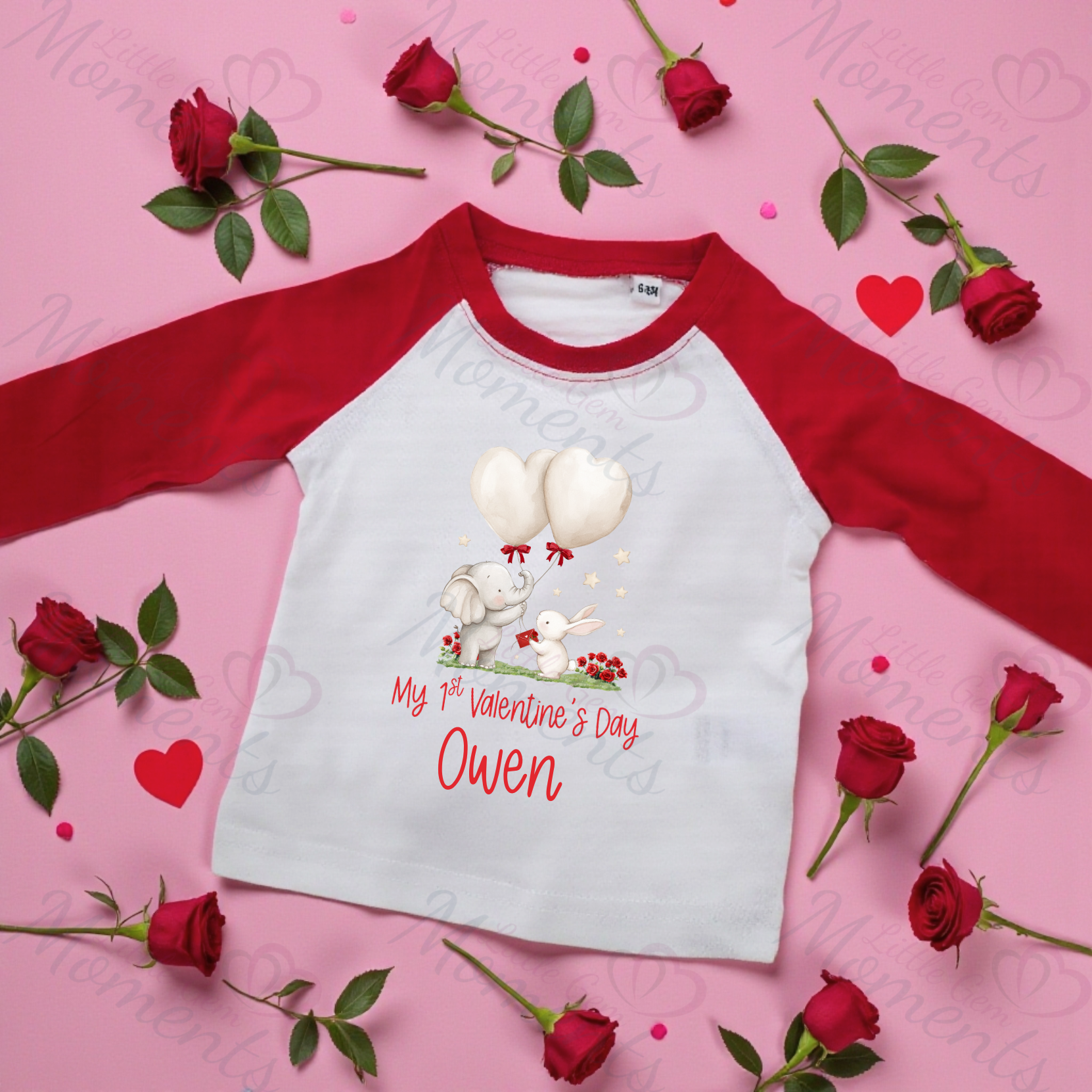 Features super cute elephant and bunny image with the wording "Mummy's Little Valentine."