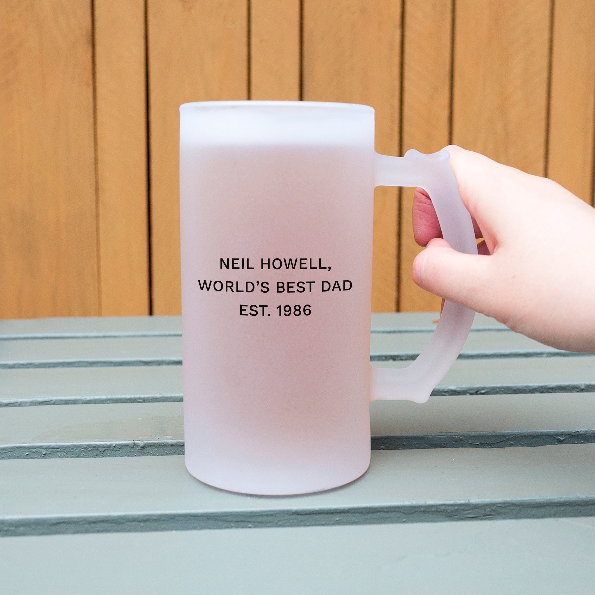 Add their favourite photo to one side of the stein. Photo must be uploaded in jpeg, png or jpg format. Max size 10mb