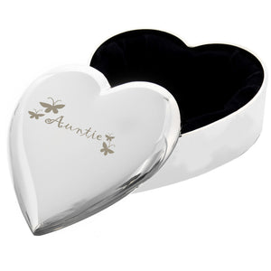 This heart trinket features a butterfly design and the wording 'Auntie' as standard text.