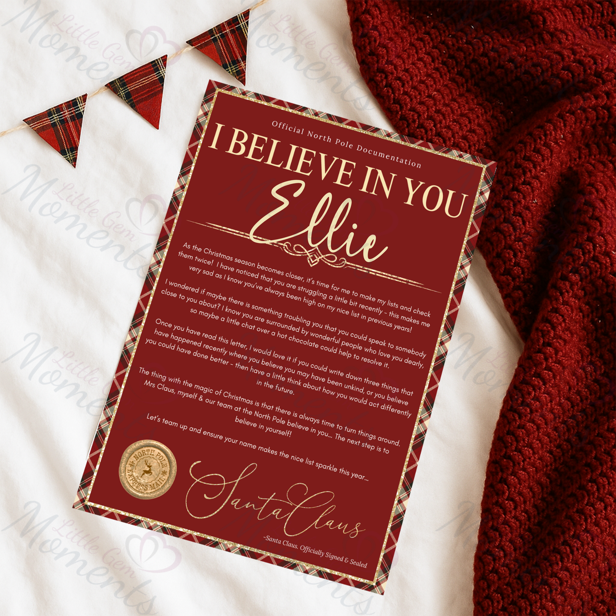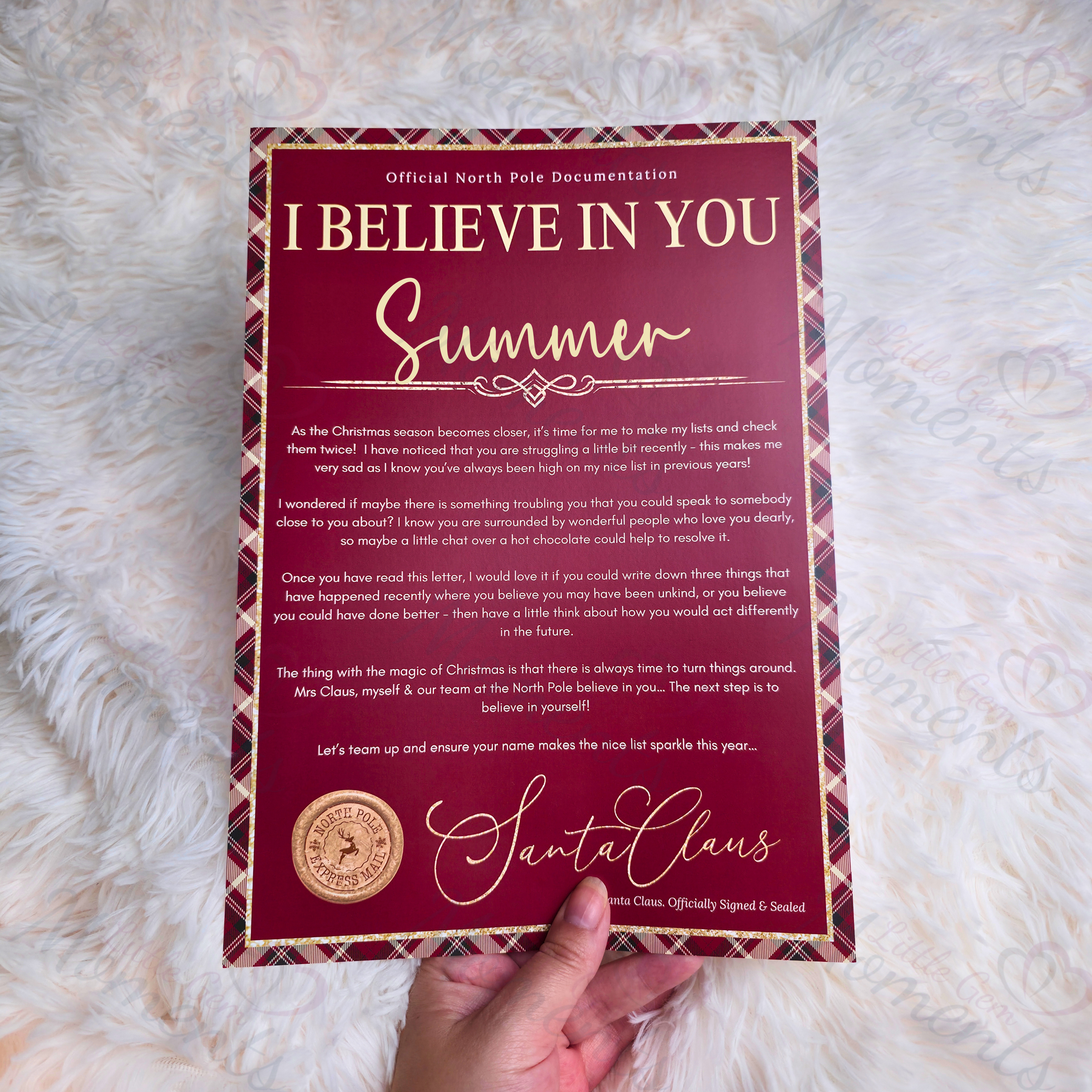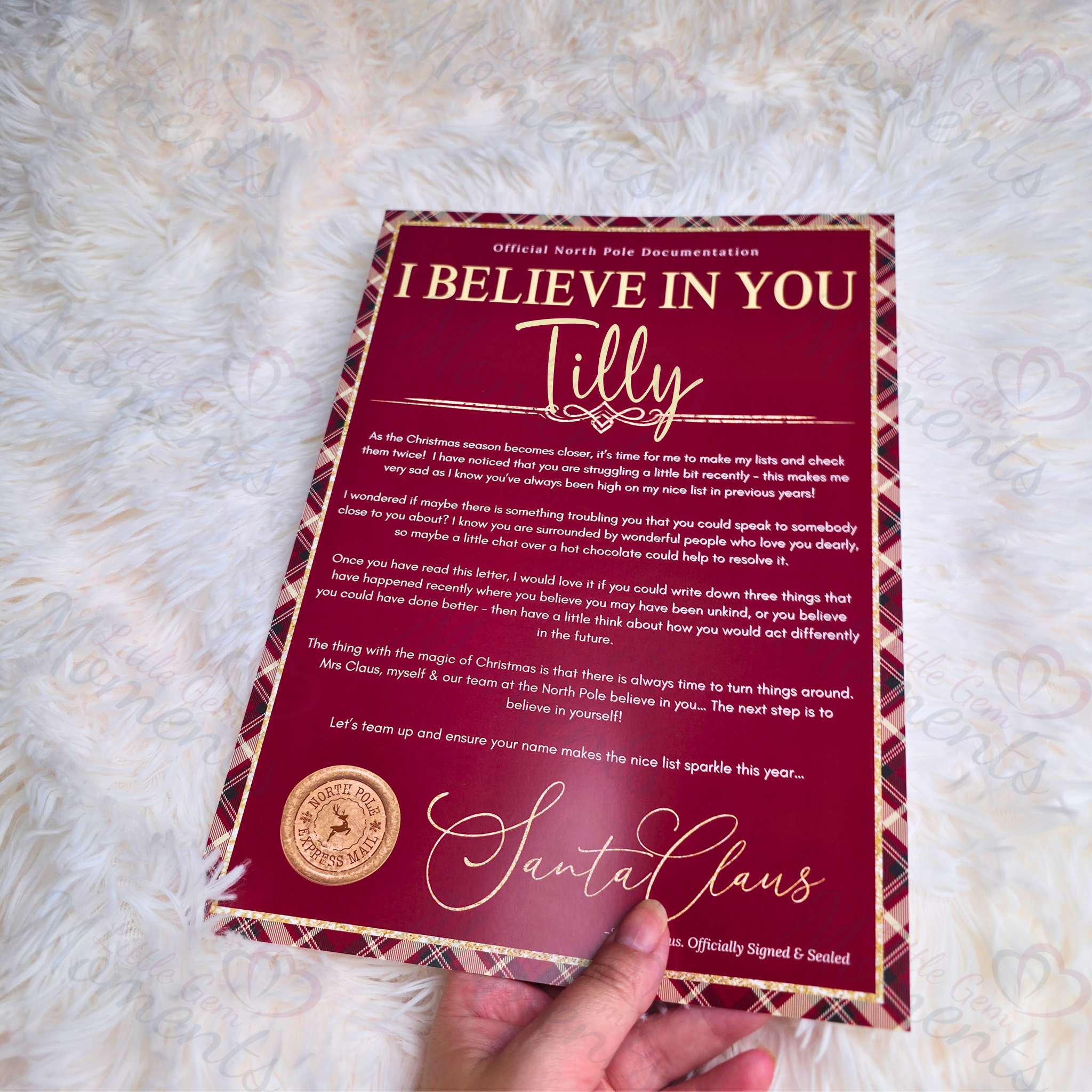 This beautiful "I Believe In You" Personalised Christmas Letter from Santa Claus is the perfect way to encourage your little one to improve their behaviour and open up to you this festive season!