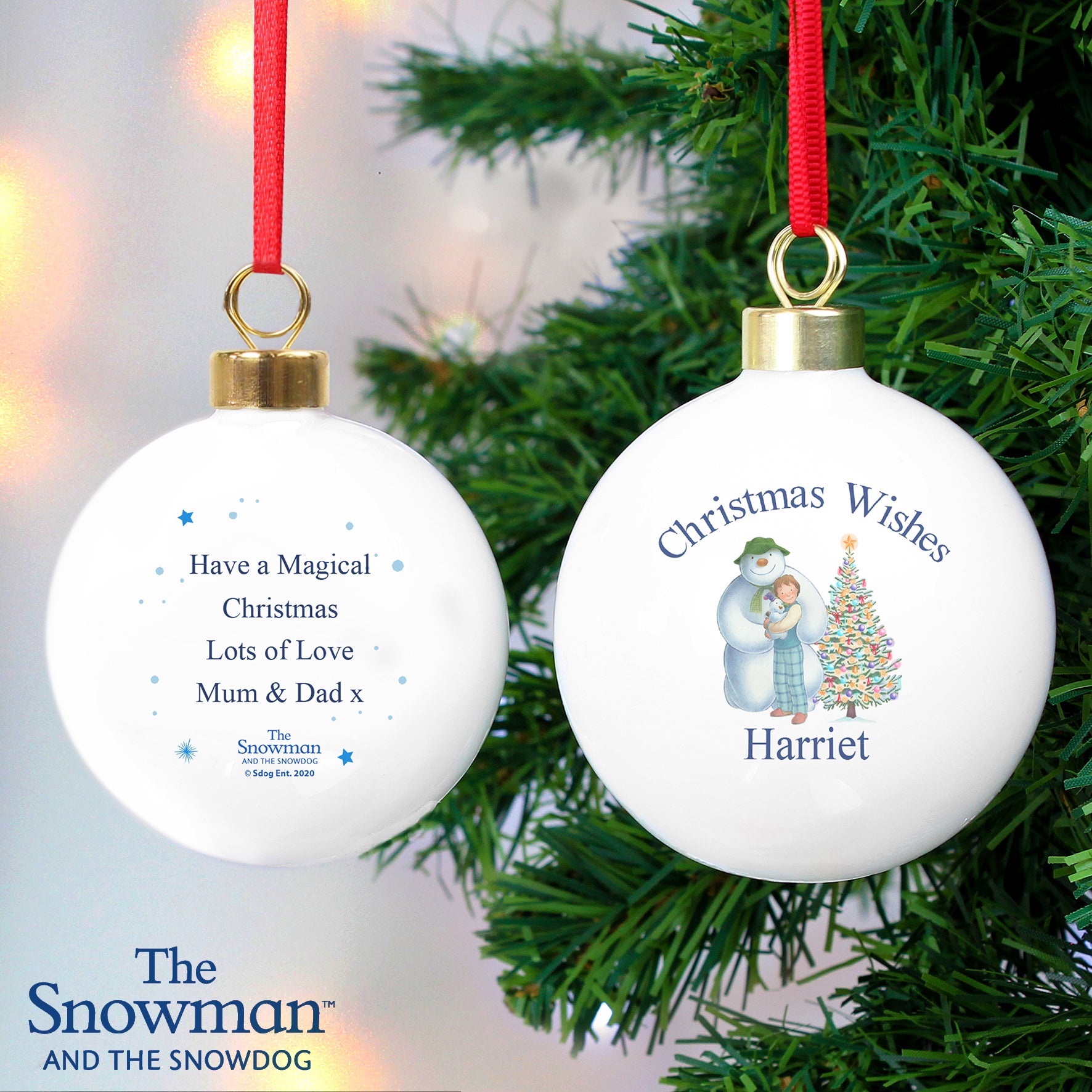 Personalised The Snowman and the Snowdog Friends Round Ceramic Decoration