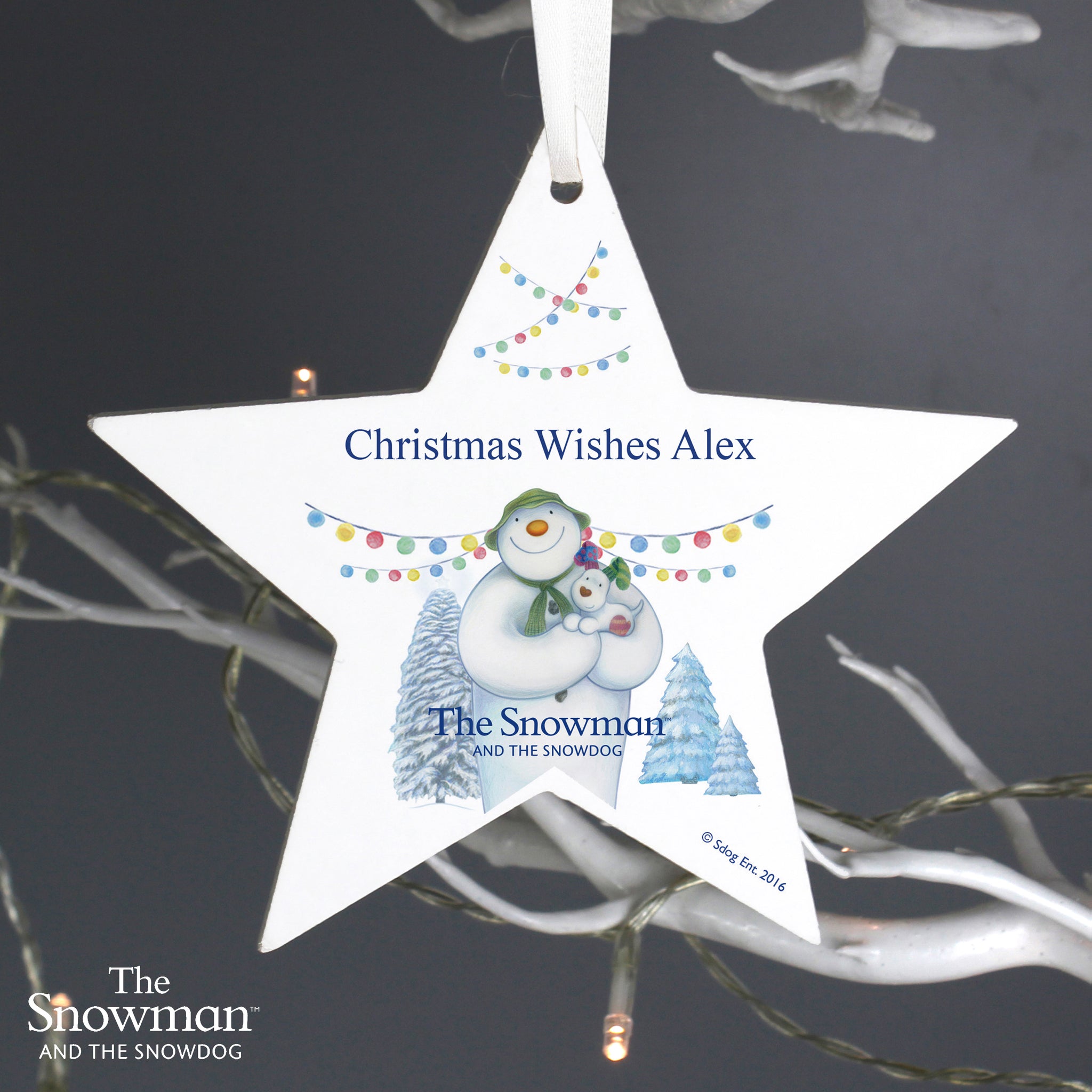 Personalised The Snowman and the Snowdog Wooden Star Decoration