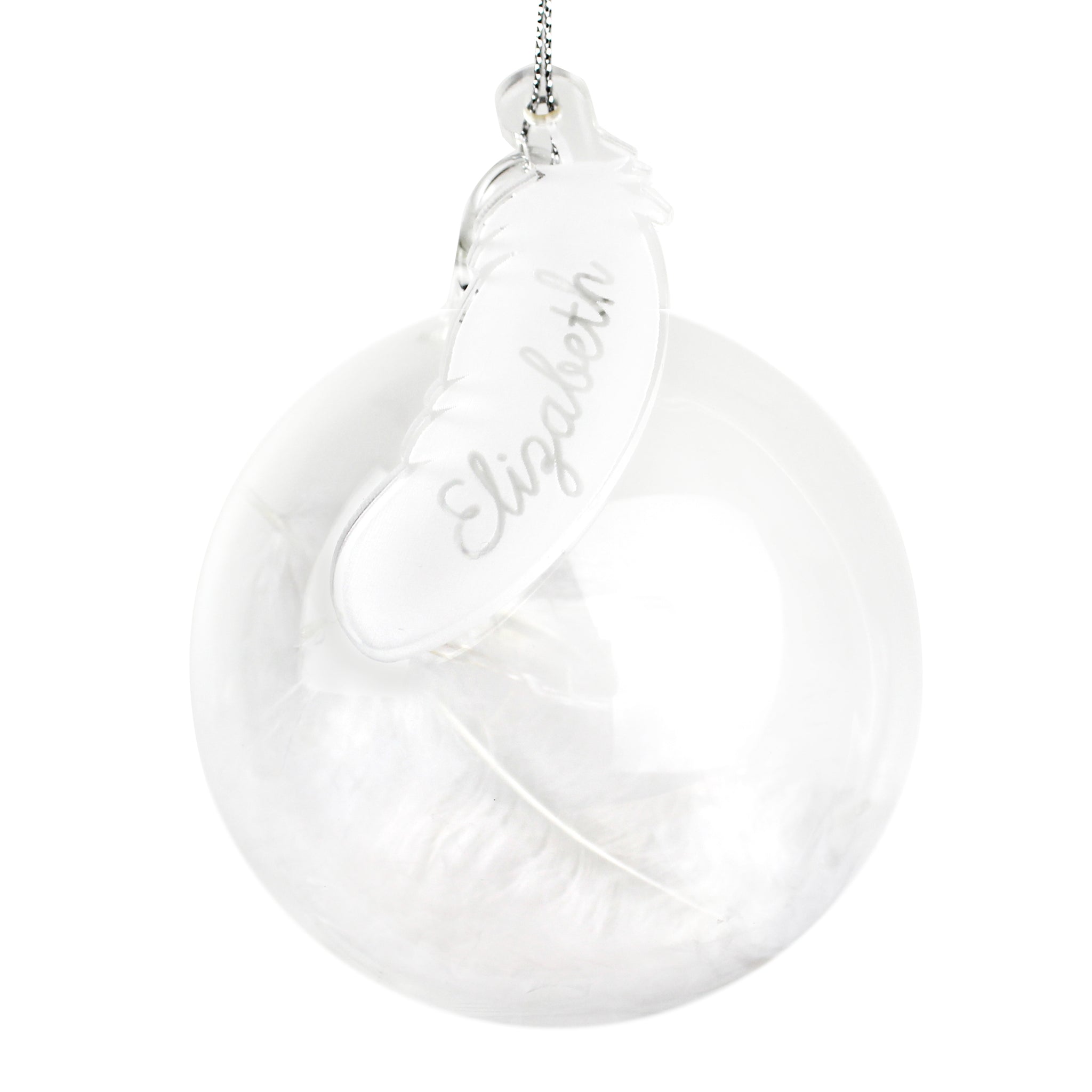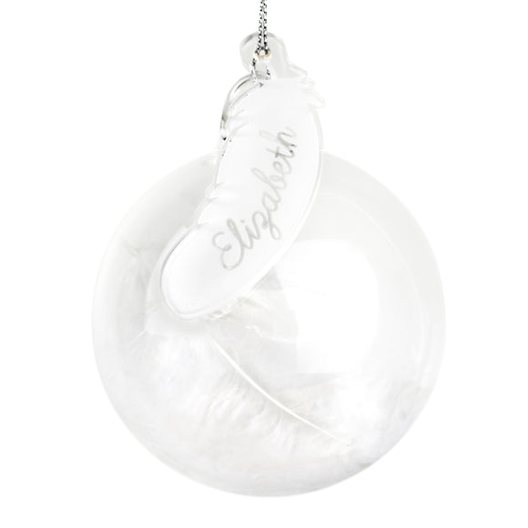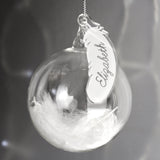 This Personalised White Feather Glass Bauble with Feather Tag will make a stunning addition to the Christmas tree.